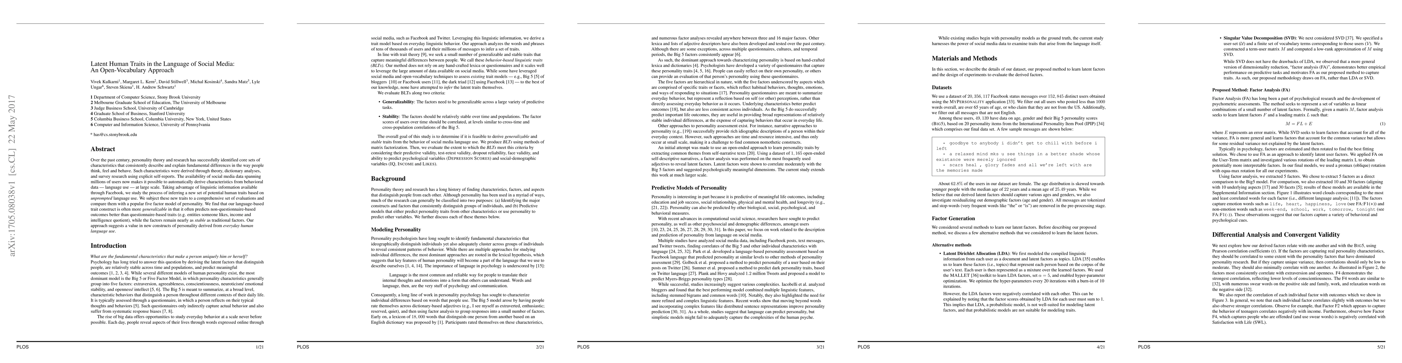 Over the past century, personality theory and research has successfully identified core sets of characteristics that consistently describe and explain fundamental differences in the way people think, feel and behave. Such characteristics were derived through theory, dictionary analyses, and survey research using explicit self-reports. The availability of social media data spanning millions of users now makes it possible to automatically derive characteristics from language use -- at large scale. Taking advantage of linguistic information available through Facebook, we study the process of inferring a new set of potential human traits based on unprompted language use. We subject these new traits to a comprehensive set of evaluations and compare them with a popular five factor model of personality. We find that our language-based trait construct is often more generalizable in that it often predicts non-questionnaire-based outcomes better than questionnaire-based traits (e.g. entities someone likes, income and intelligence quotient), while the factors remain nearly as stable as traditional factors. Our approach suggests a value in new constructs of personality derived from everyday human language use.
