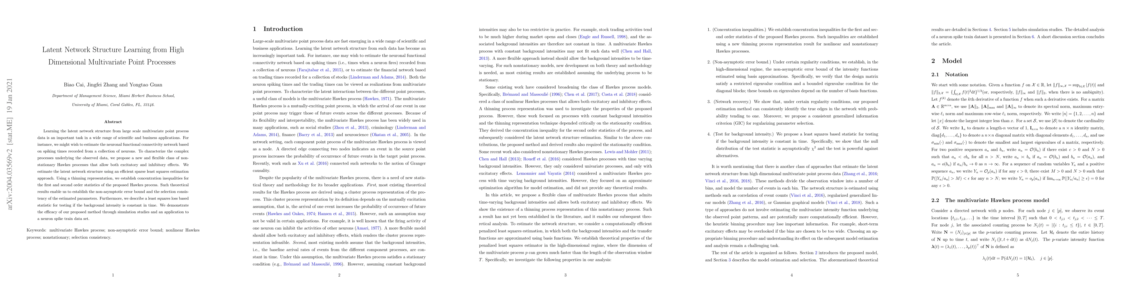 Researchers propose a new method to learn latent network structures from high-dimensional multivariate point process data, enabling analysis of complex biological networks like neuronal connectivity networks. The approach provides theoretical results and demonstrates its efficacy through simulation studies and real-world application.