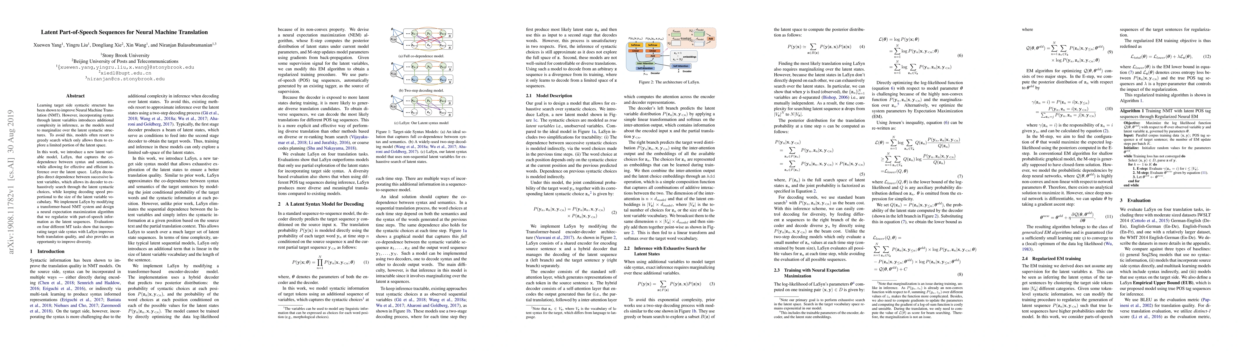 This paper introduces LaSyn, a new latent variable model for Neural Machine Translation that captures the co-dependence between syntax and semantics, allowing efficient inference and exhaustive search over latent syntactic structures. Evaluations show improved translation quality and diversity across multiple tasks.