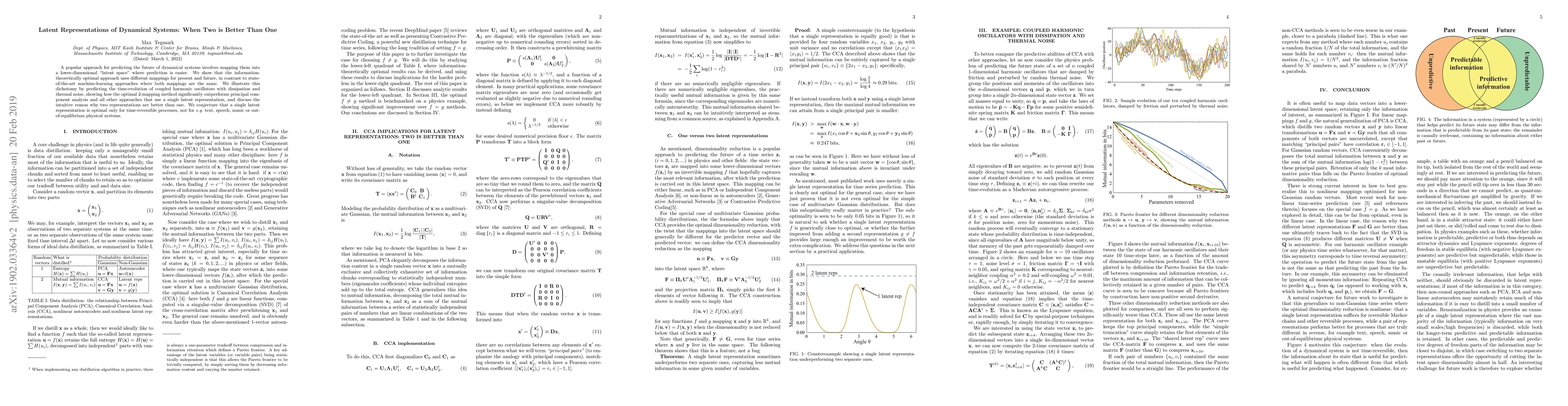 A popular approach for predicting the future of dynamical systems involves mapping them into a lower-dimensional "latent space" where prediction is easier. We show that the information-theoretically optimal approach uses different mappings for present and future, in contrast to state-of-the-art machine-learning approaches where both mappings are the same. We illustrate this dichotomy by predicting the time-evolution of coupled harmonic oscillators with dissipation and thermal noise, showing how the optimal 2-mapping method significantly outperforms principal component analysis and all other approaches that use a single latent representation, and discuss the intuitive reason why two representations are better than one. We conjecture that a single latent representation is optimal only for time-reversible processes, not for e.g. text, speech, music or out-of-equilibrium physical systems.