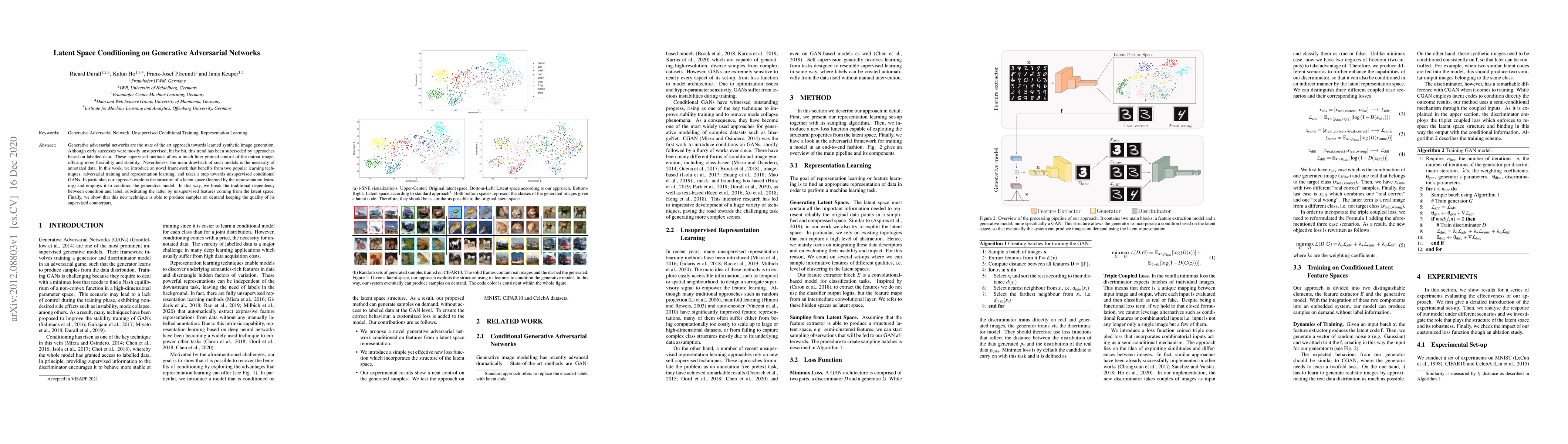 This paper introduces a novel framework for unsupervised conditional generative adversarial networks (GANs) that leverages latent space conditioning. By utilizing representation learning to extract features from the latent space, the method conditions the generative model without requiring labeled data, thus maintaining the quality of supervised GANs.
