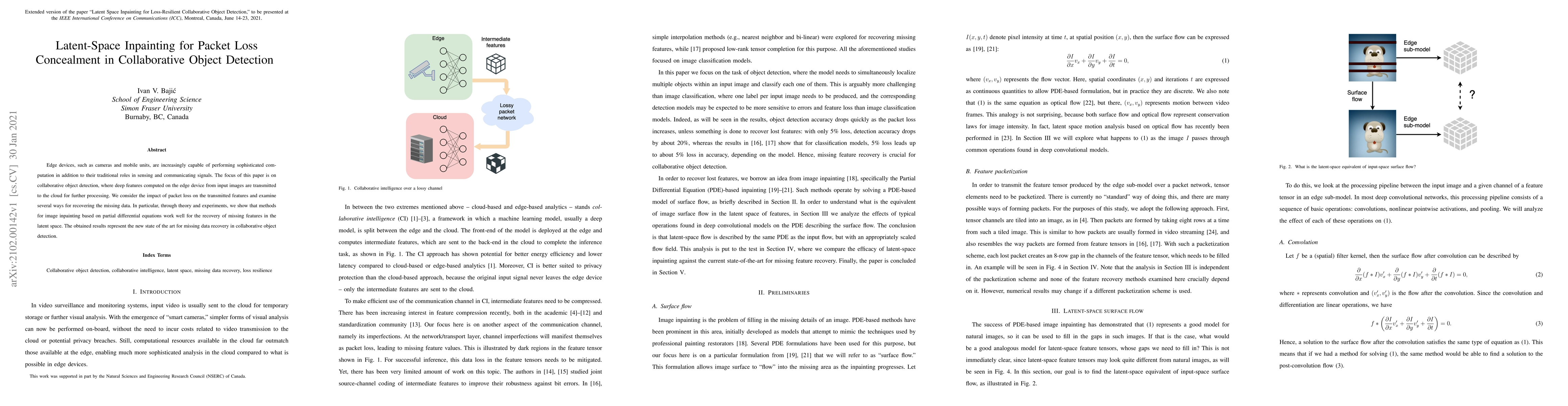 Researchers developed a new method for recovering missing data in collaborative object detection due to packet loss, using image inpainting based on partial differential equations. This approach represents the current state of the art for missing data recovery in edge computing applications.