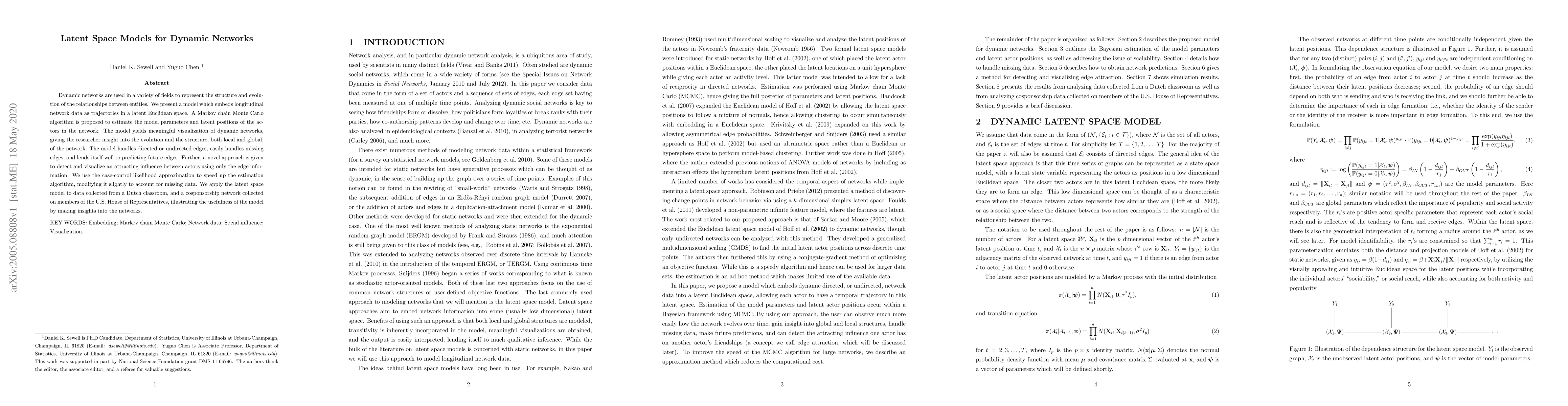 A new model embeds dynamic network data in a latent Euclidean space, enabling meaningful visualization of network evolution and structure. The model accurately handles missing edges and predicts future connections.