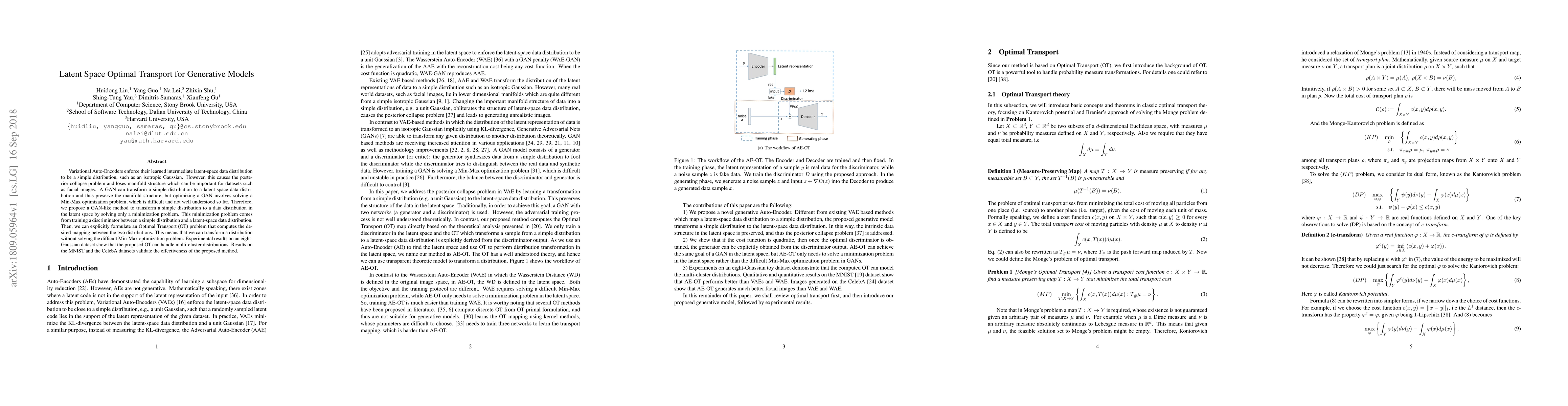 Researchers propose a new method to transform simple distributions into data distributions in latent space without solving complex minimization problems, using Optimal Transport (OT) and a discriminator-based approach.