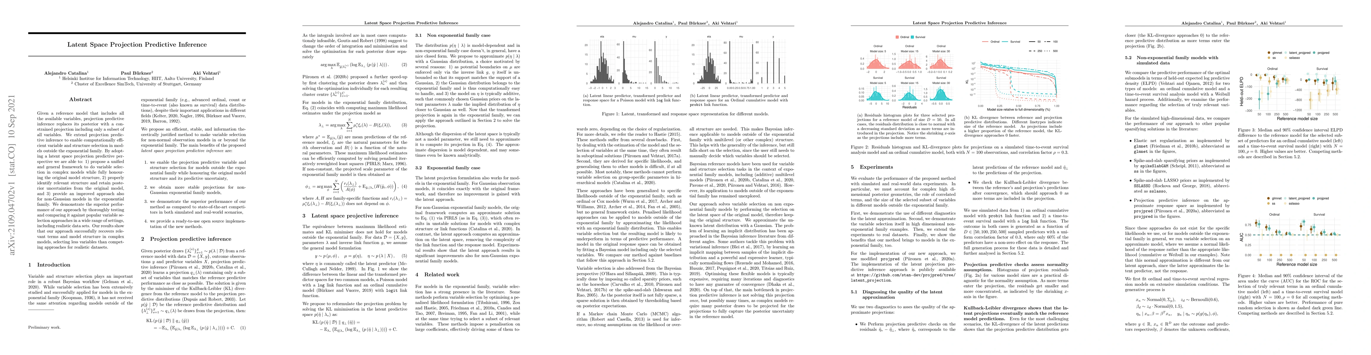 This paper proposes a latent space projection predictive inference framework for efficient variable and structure selection in complex models beyond the exponential family. The method successfully recovers relevant terms and model structures while reducing variable selection compared to popular alternatives, demonstrating superior performance across various settings.