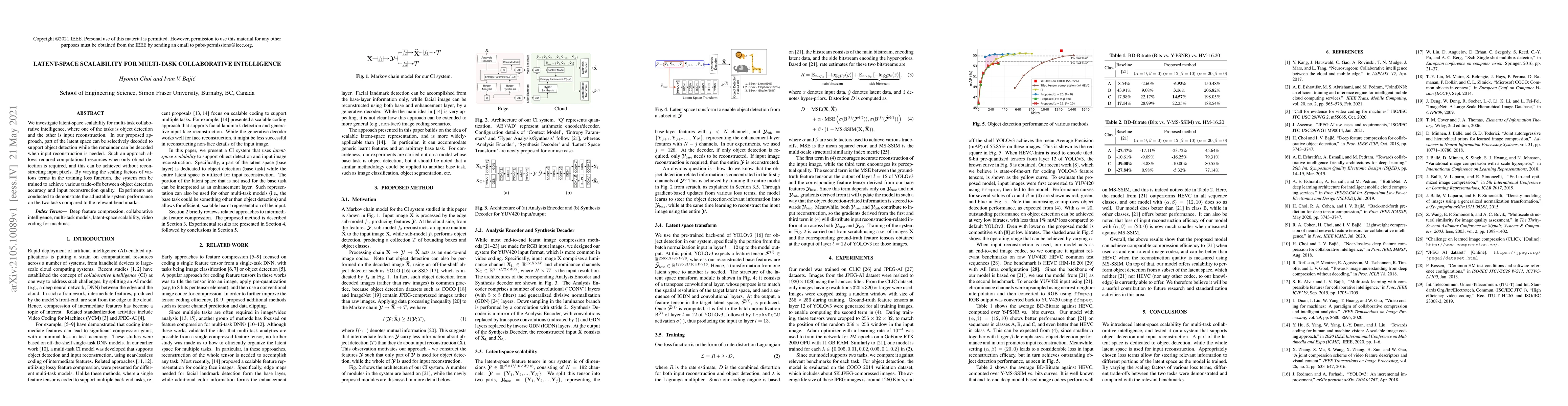 We investigate latent-space scalability for multi-task collaborative intelligence, where one of the tasks is object detection and the other is input reconstruction. In our proposed approach, part of the latent space can be selectively decoded to support object detection while the remainder can be decoded when input reconstruction is needed. Such an approach allows reduced computational resources when only object detection is required, and this can be achieved without reconstructing input pixels. By varying the scaling factors of various terms in the training loss function, the system can be trained to achieve various trade-offs between object detection accuracy and input reconstruction quality. Experiments are conducted to demonstrate the adjustable system performance on the two tasks compared to the relevant benchmarks.