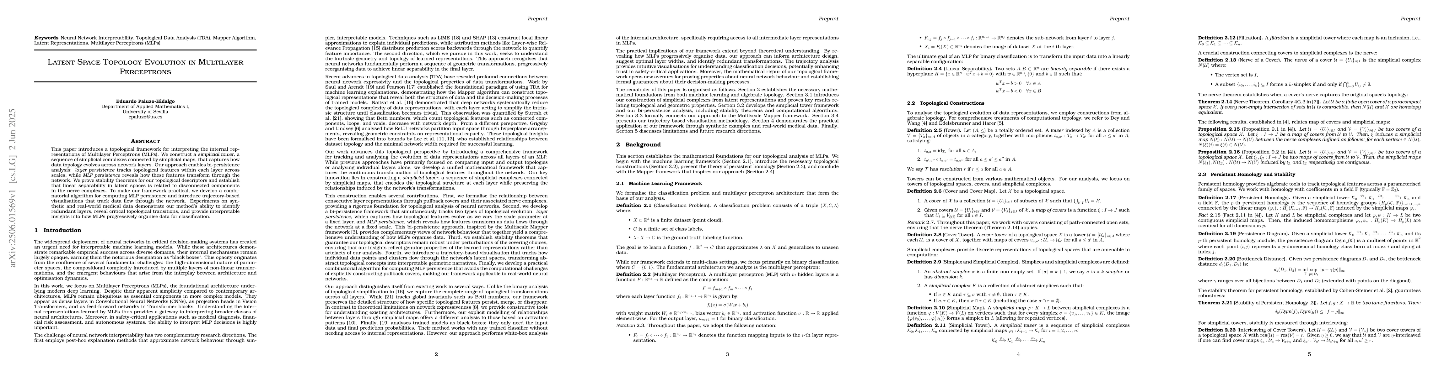 This paper introduces a topological framework for interpreting the internal representations of Multilayer Perceptrons (MLPs). We construct a simplicial tower, a sequence of simplicial complexes connected by simplicial maps, that captures how data topology evolves across network layers. Our approach enables bi-persistence analysis: layer persistence tracks topological features within each layer across scales, while MLP persistence reveals how these features transform through the network. We prove stability theorems for our topological descriptors and establish that linear separability in latent spaces is related to disconnected components in the nerve complexes. To make our framework practical, we develop a combinatorial algorithm for computing MLP persistence and introduce trajectory-based visualisations that track data flow through the network. Experiments on synthetic and real-world medical data demonstrate our method's ability to identify redundant layers, reveal critical topological transitions, and provide interpretable insights into how MLPs progressively organise data for classification.