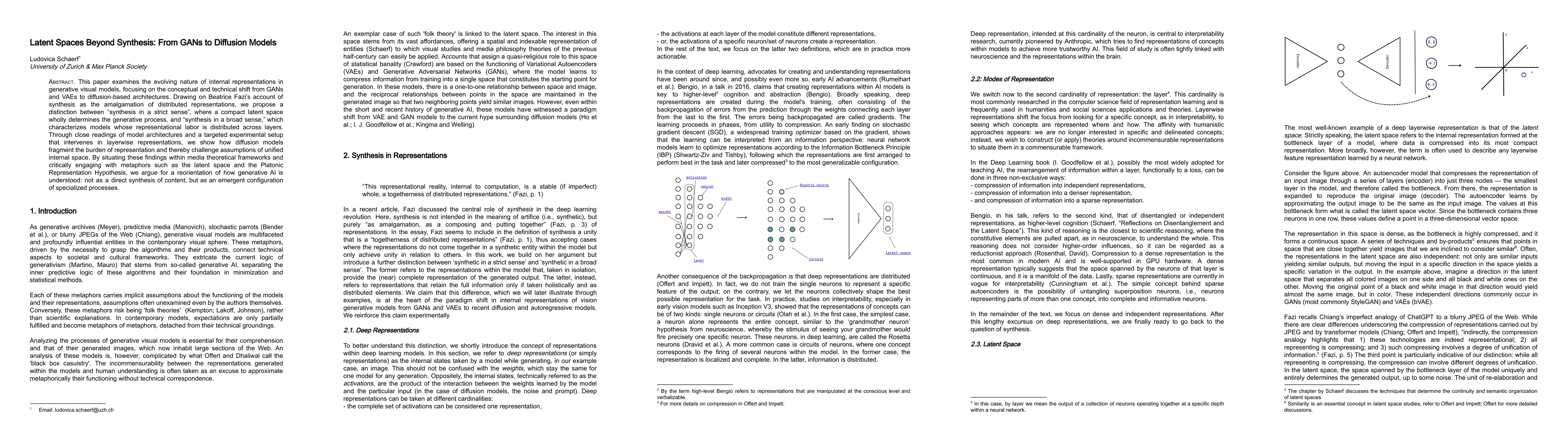 Proposes a shift from viewing latent spaces as unified representations to understanding them as distributed and emergent, with implications for both theoretical and practical applications in generative AI.