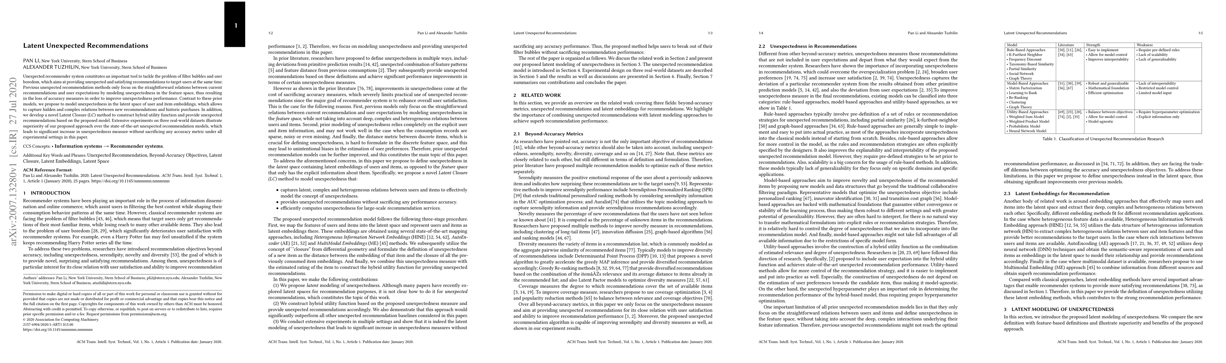 This paper proposes a new method for unexpected recommendations that uses latent space modeling to capture hidden relations between user and item embeddings, outperforming existing methods on three real-world datasets.