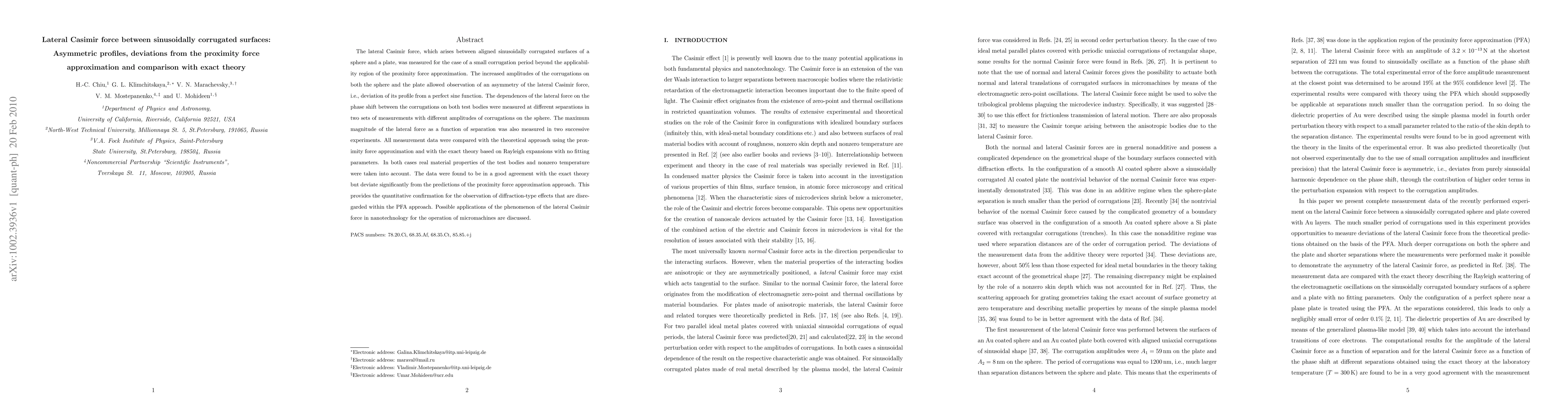 This paper measures the lateral Casimir force between sinusoidally corrugated surfaces, revealing asymmetry and deviations from the proximity force approximation. It finds good agreement with exact theory but significant discrepancies from the proximity force approximation, confirming diffraction-type effects and discussing potential nanotechnology applications.