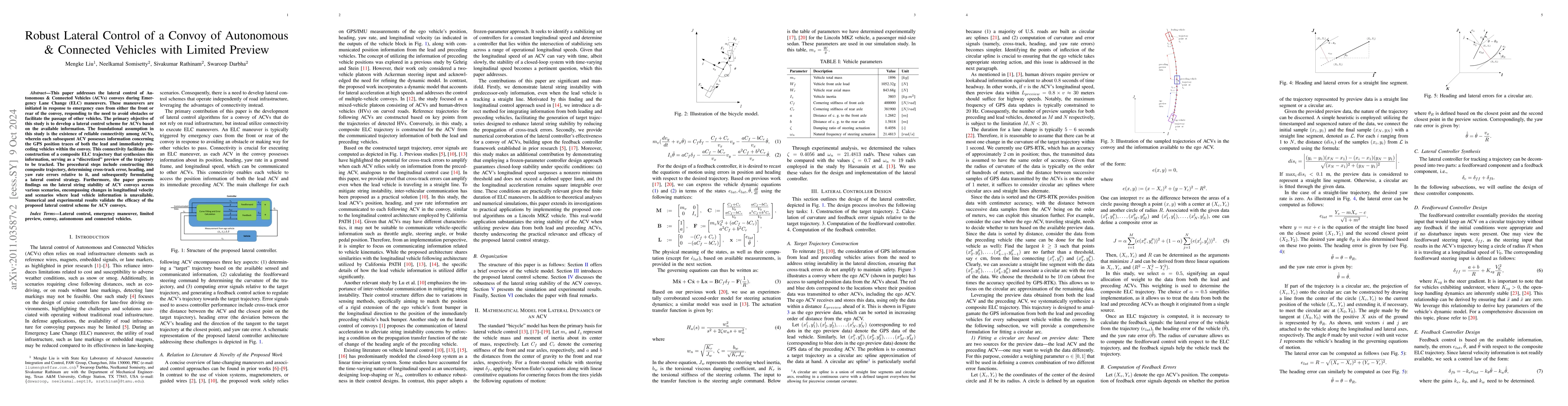 This work differs from existing research by proposing a controller architecture that effectively accommodates and fuses communicated data from both lead and preceding vehicles, ensuring stable lateral motion control under limited preview conditions.