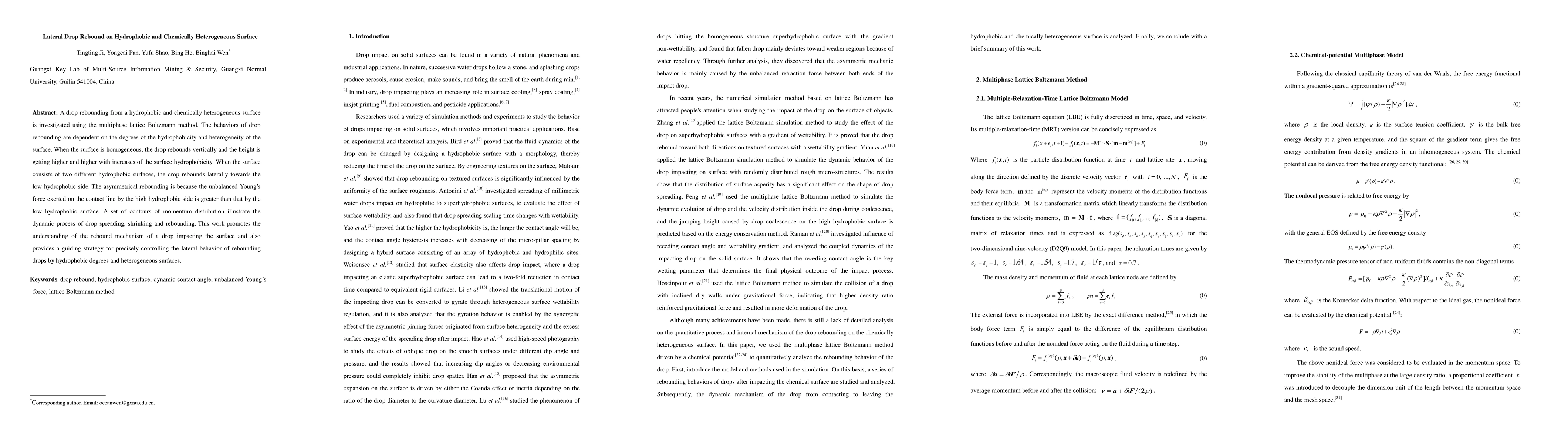 A drop rebounding from a hydrophobic surface behaves differently depending on its homogeneity and degree of hydrophobicity, with lateral movement occurring when the surface has two distinct hydrophobic sides.
