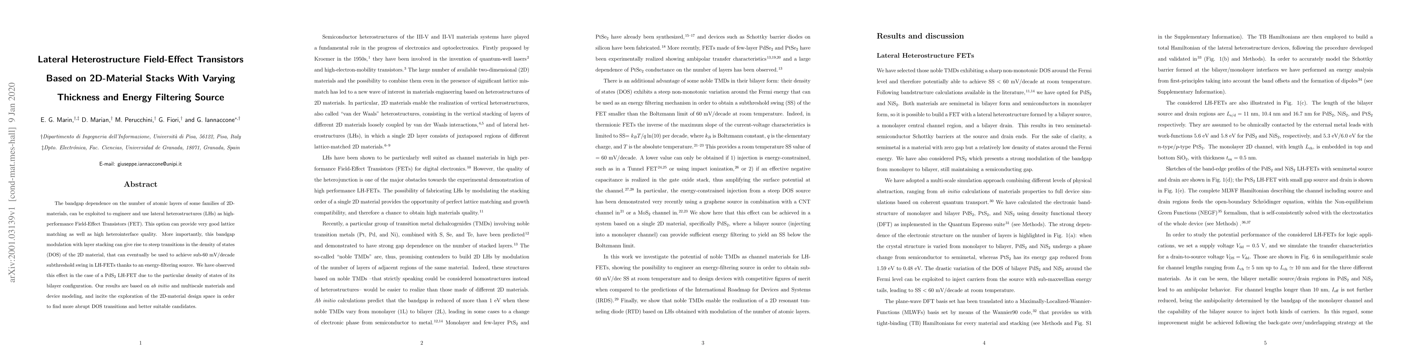 This paper explores the use of lateral heterostructure field-effect transistors (LH-FETs) based on 2D material stacks with varying thickness to achieve high performance. The study shows that bandgap modulation through layer stacking can lead to steep transitions in the density of states, enabling sub-60 mV/decade subthreshold swing in LH-FETs, demonstrated through PdS2 bilayer configurations.