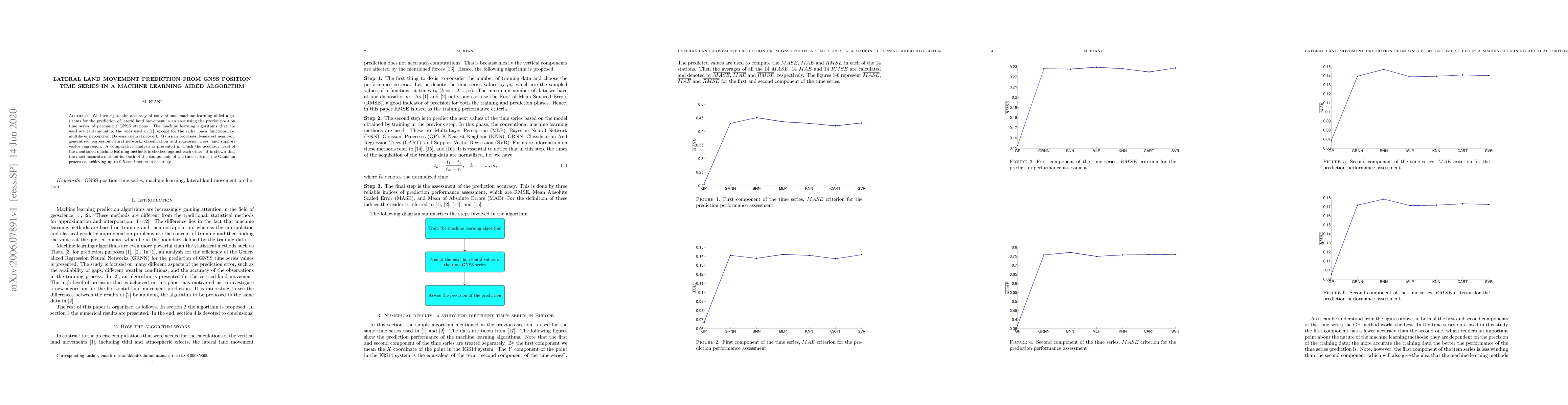 The paper proposes a machine learning aided algorithm for predicting lateral land movement using GNSS position time series, with Gaussian Processes (GP) demonstrating the highest accuracy.
