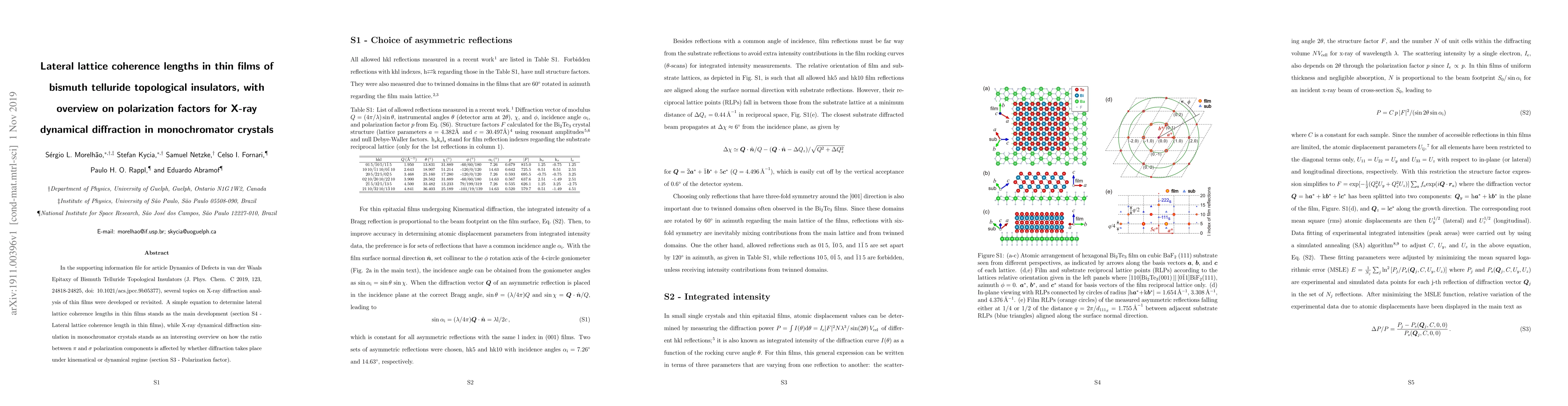This paper develops a simple equation to determine lateral lattice coherence lengths in thin films of bismuth telluride topological insulators and provides an overview of X-ray dynamical diffraction in monochromator crystals, focusing on polarization factors under kinematical and dynamical diffraction regimes.