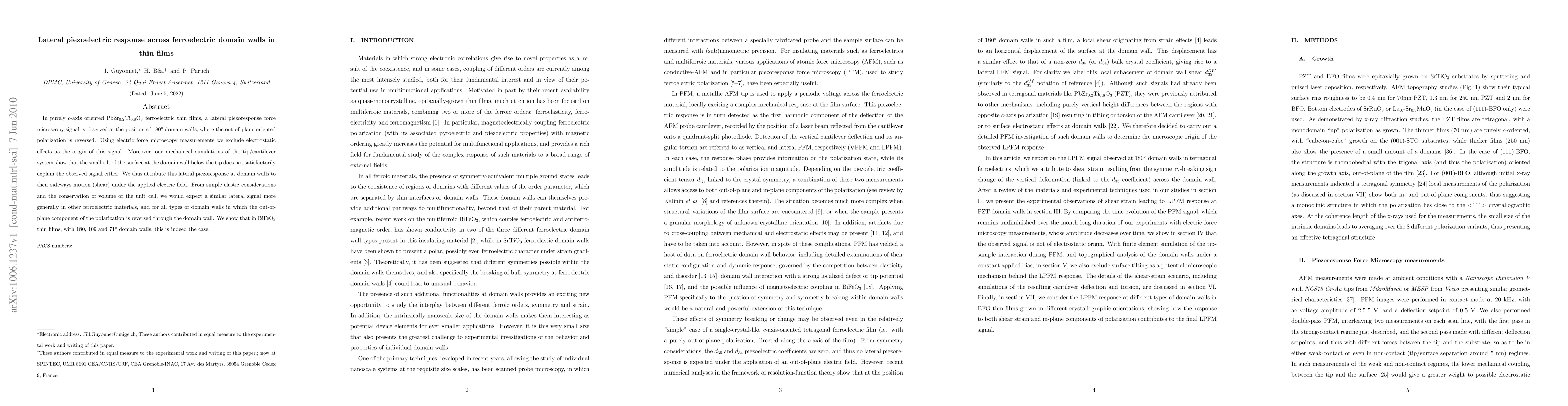 In purely c-axis oriented PbZr$_{0.2}$Ti$_{0.8}$O$_3$ ferroelectric thin films, a lateral piezoresponse force microscopy signal is observed at the position of 180{\deg}domain walls, where the out-of-plane oriented polarization is reversed. Using electric force microscopy measurements we exclude electrostatic effects as the origin of this signal. Moreover, our mechanical simulations of the tip/cantilever system show that the small tilt of the surface at the domain wall below the tip does not satisfactorily explain the observed signal either. We thus attribute this lateral piezoresponse at domain walls to their sideways motion (shear) under the applied electric field. From simple elastic considerations and the conservation of volume of the unit cell, we would expect a similar lateral signal more generally in other ferroelectric materials, and for all types of domain walls in which the out-of-plane component of the polarization is reversed through the domain wall. We show that in BiFeO$_3$ thin films, with 180, 109 and 71{\deg}domain walls, this is indeed the case.