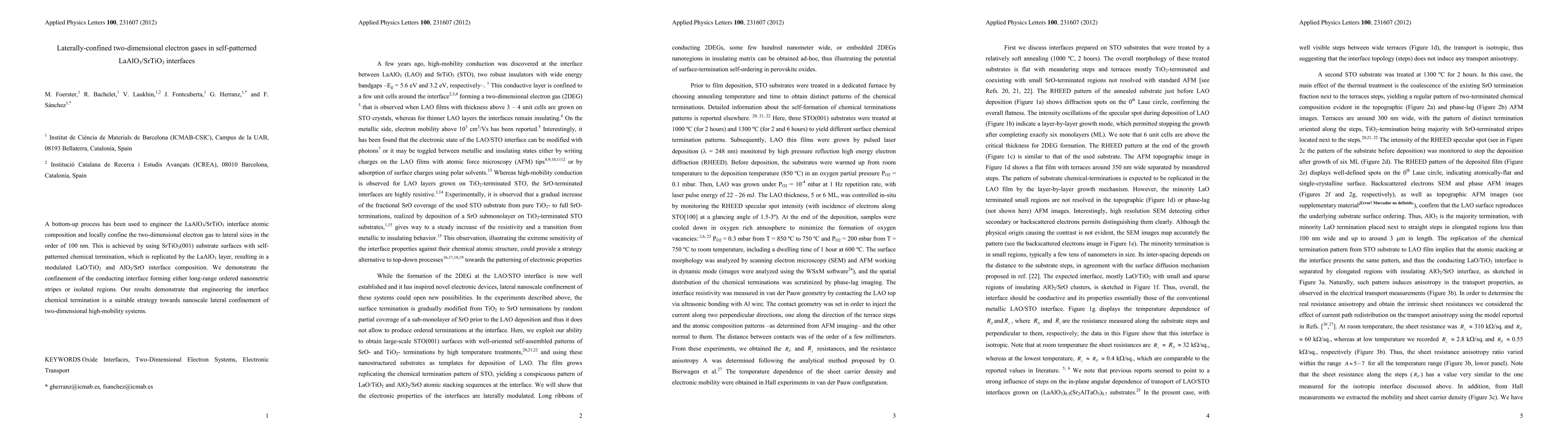 Researchers created self-patterned interfaces to confine two-dimensional electron gases in a specific area, achieving lateral sizes of 100 nm, using LaAlO3/SrTiO3 substrate surfaces.