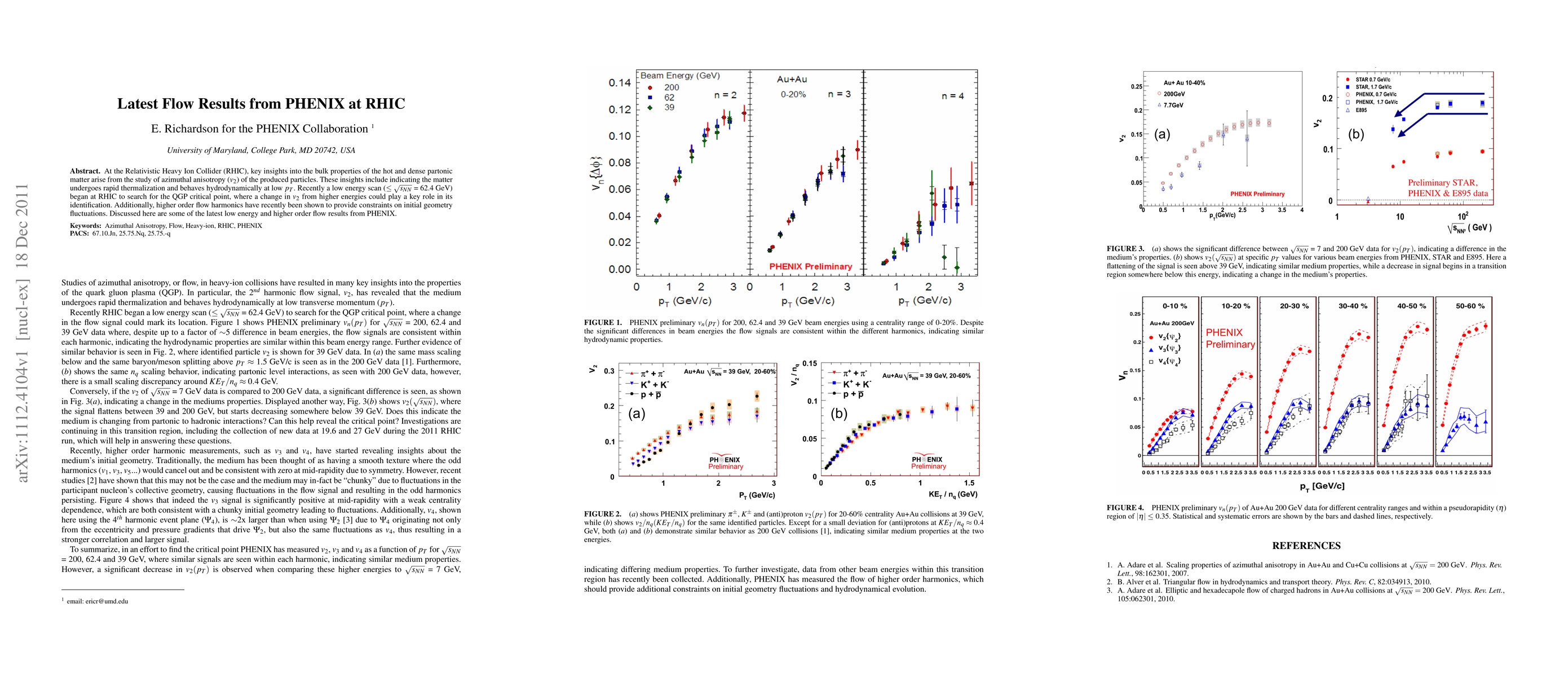 This paper presents recent findings from PHENIX at RHIC on the azimuthal anisotropy ($v_2$) of particles, indicating rapid thermalization and hydrodynamic behavior in hot and dense partonic matter. It also explores the implications of a low energy scan for identifying the QGP critical point and discusses the role of higher order flow harmonics in constraining initial geometry fluctuations.