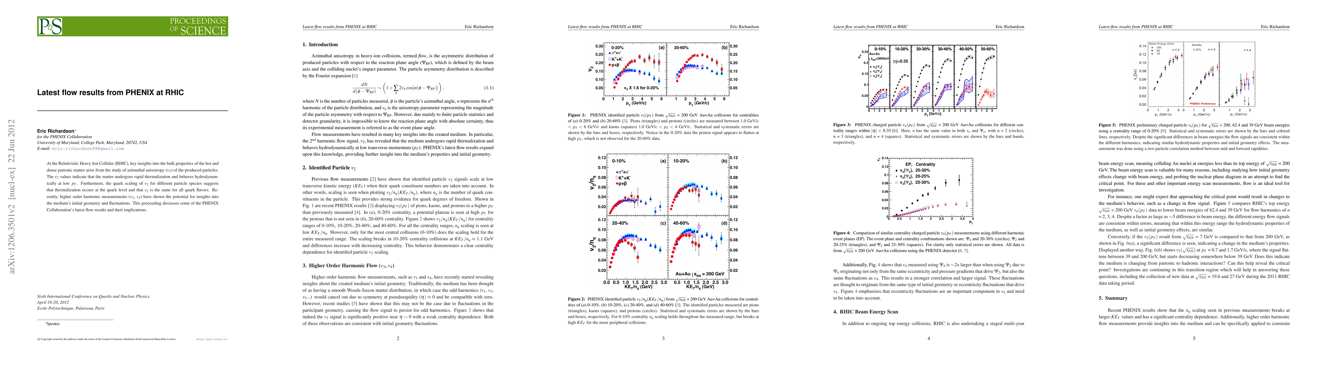 The PHENIX Collaboration at RHIC reports that the azimuthal anisotropy (v_2) of produced particles indicates rapid thermalization and hydrodynamic behavior in hot and dense partonic matter. The quark scaling of v_2 suggests thermalization at the quark level, while higher-order harmonics (v_3, v_4) reveal insights into the medium's initial geometry and fluctuations.