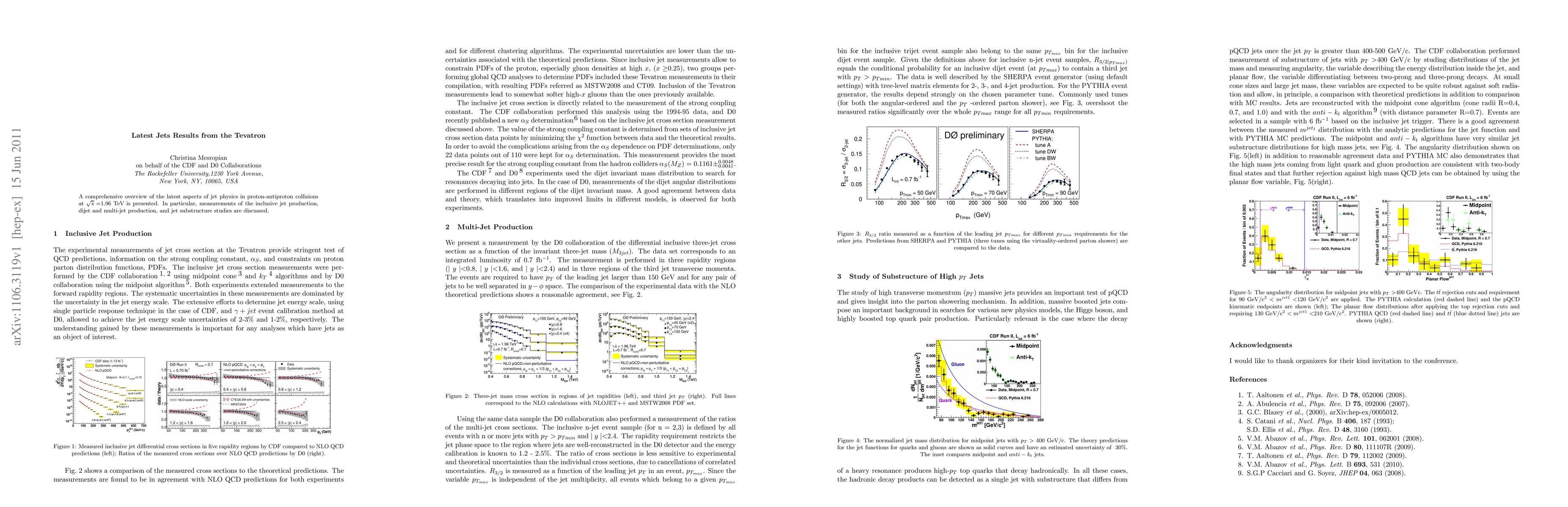 This paper provides a detailed analysis of jet physics in proton-antiproton collisions at the Tevatron, focusing on inclusive jet production, dijet and multi-jet events, and jet substructure studies. The results contribute to a deeper understanding of strong force interactions at high energies.