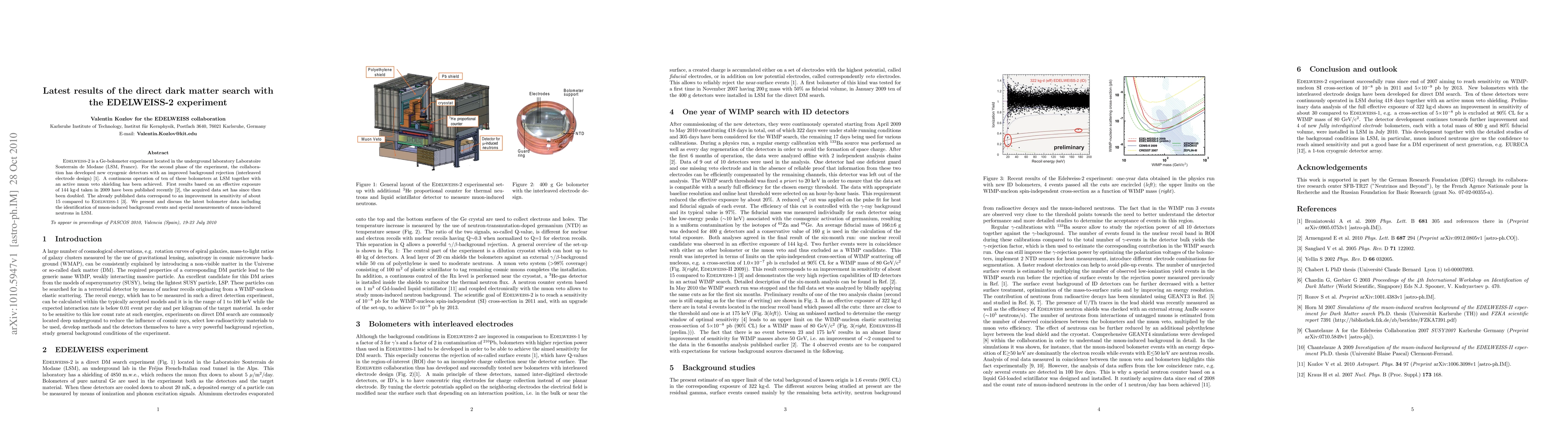 EDELWEISS-2 is a Ge-bolometer experiment located in the underground laboratory Laboratoire Souterrain de Modane (LSM, France). For the second phase of the experiment, the collaboration has developed new cryogenic detectors with an improved background rejection (interleaved electrodes design, Phys. Lett. B681 (2009) 305). A continuous operation of ten of these bolometers at LSM together with an active muon veto shielding has been achieved. First results based on an effective exposure of 144 kg \dot d taken in 2009 have been published recently (Phys. Lett. B687 (2010) 29), the acquired data set has since then been doubled. The already published data correspond to an improvement in sensitivity of about 15 compared to EDELWEISS-1. We present and discuss the latest bolometer data including the identification of muon-induced background events and special measurements of muon-induced neutrons in LSM.