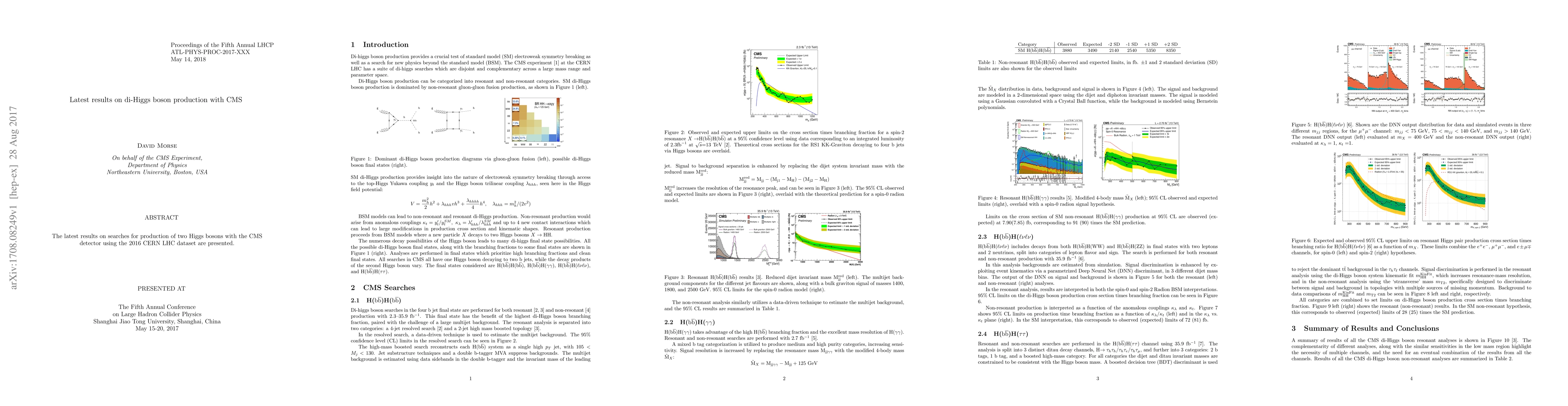 The latest results on searches for production of two Higgs bosons with the CMS detector using the 2016 CERN LHC dataset are presented, as shown at the LHCP 2017 conference.