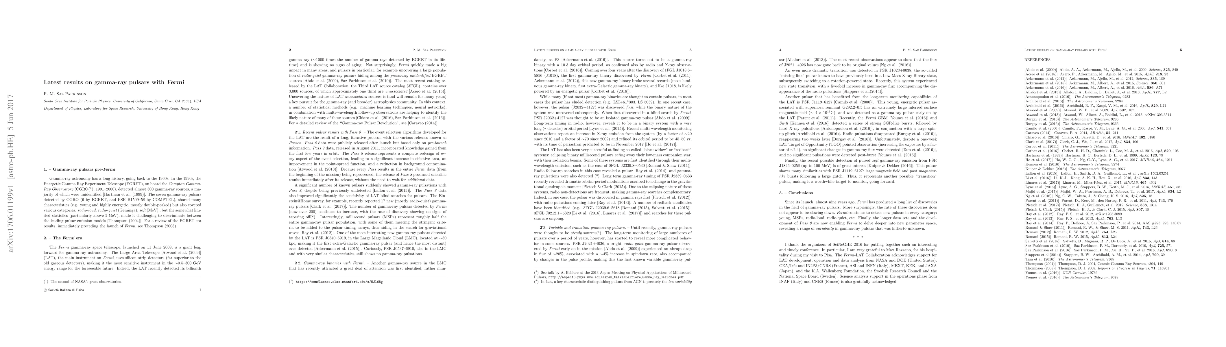 The Fermi Large Area Telescope (LAT) has detected over 200 gamma-ray pulsars, the largest class of gamma-ray emitters in the Galaxy. Recent discoveries, especially since the release of Pass 8 data, continue to expand our understanding of these celestial objects.