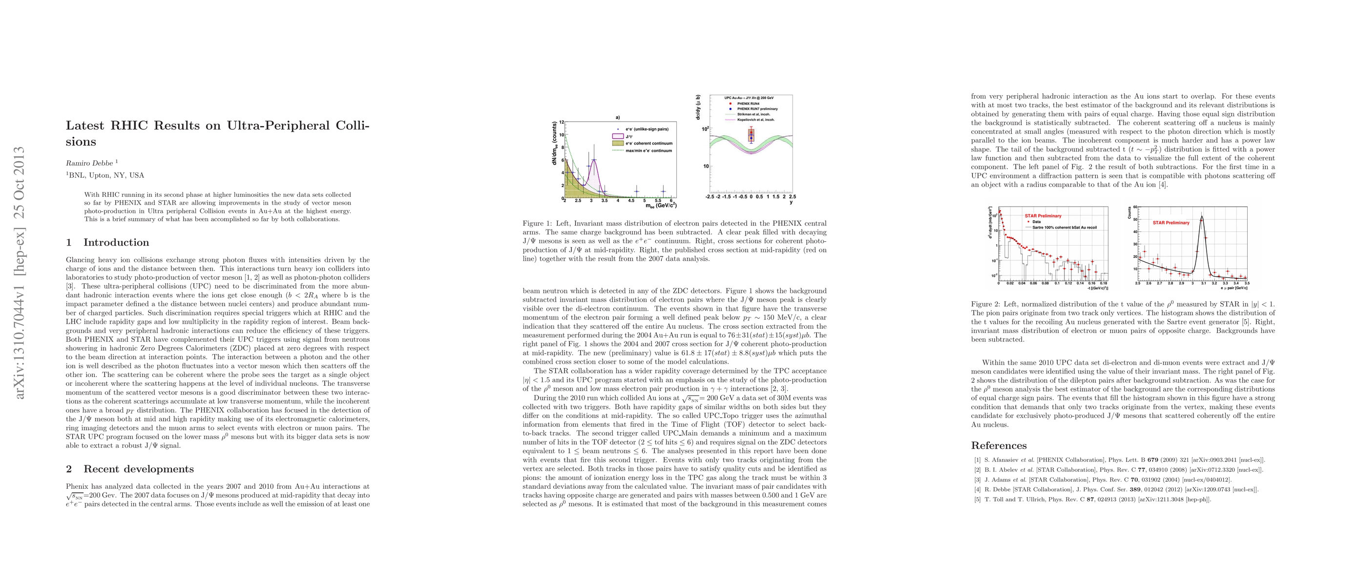 This paper summarizes the latest findings from RHIC's second phase, highlighting advancements in the study of vector meson photo-production in ultra-peripheral Au+Au collisions at high energy, based on new datasets from PHENIX and STAR collaborations.