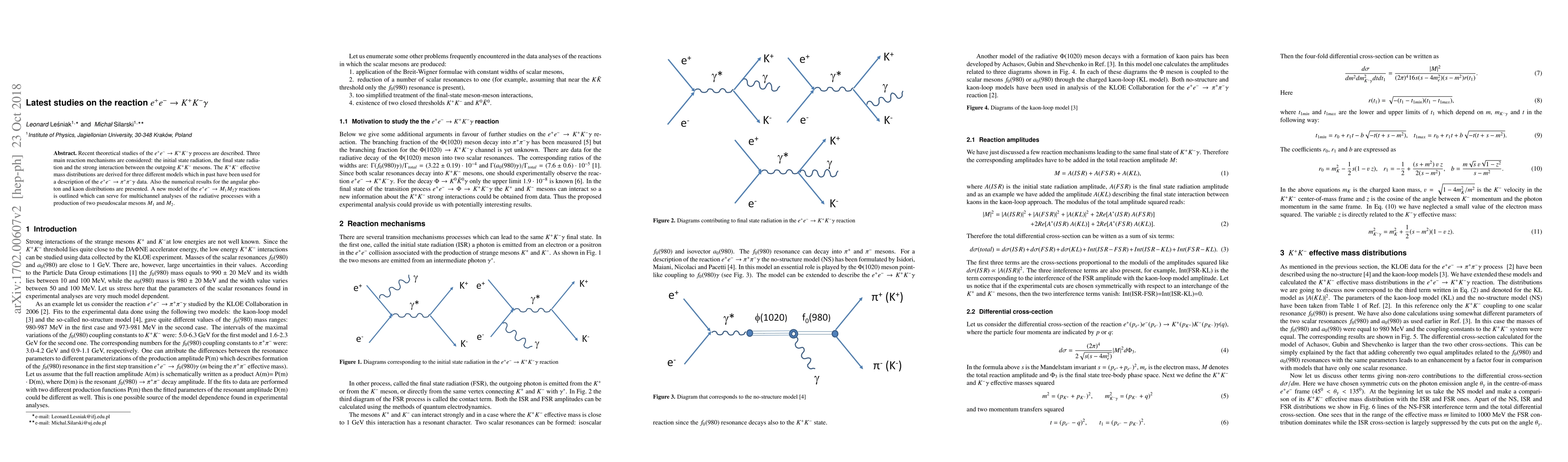 Recent theoretical studies of the e+ e- --> K + K- gamma process are described. Three main reaction mechanisms are considered: the initial state radiation, the final state radiation and the strong interaction between the outgoing K+ K- mesons. The K+ K- effective mass distributions are derived for three different models which in past have been used for a description of the e+ e- --> pi+ pi- gamma data. Also the numerical results for the angular photon and kaon distributions are presented. A new model of the e+ e- --> M_1 M_2 gamma reactions is outlined which can serve for multichannel analyses of the radiative processes with a production of two pseudoscalar mesons M_1 and M_2.