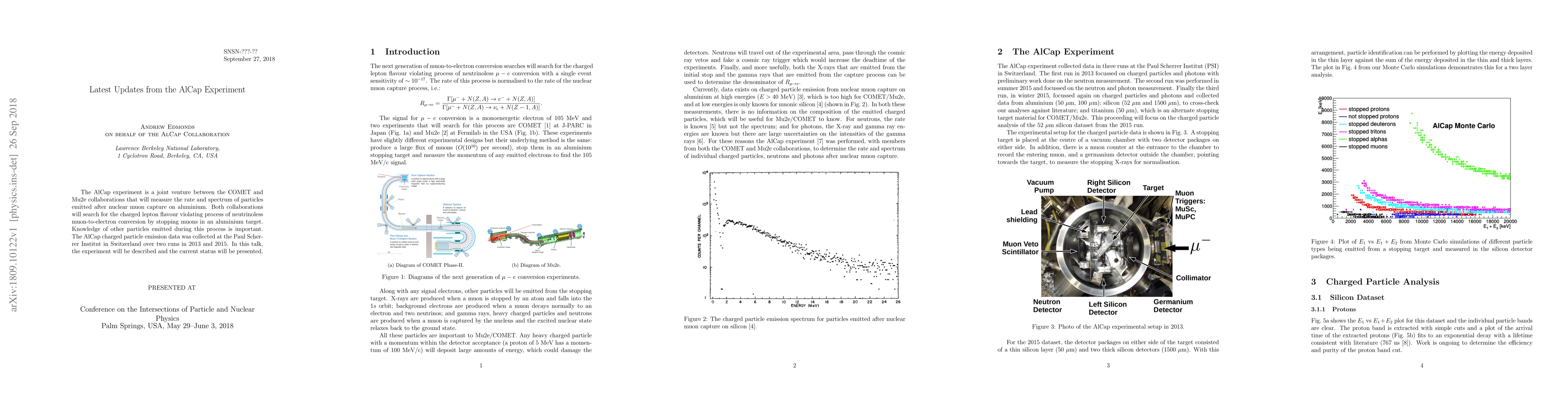 The AlCap experiment is a joint venture between the COMET and Mu2e collaborations that will measure the rate and spectrum of particles emitted after nuclear muon capture on aluminium. Both collaborations will search for the charged lepton flavour violating process of neutrinoless muon-to-electron conversion by stopping muons in an aluminium target. Knowledge of other particles emitted during this process is important. The AlCap charged particle emission data was collected at the Paul Scherrer Institut in Switzerland over two runs in 2013 and 2015. In this talk, the experiment will be described and the current status will be presented.