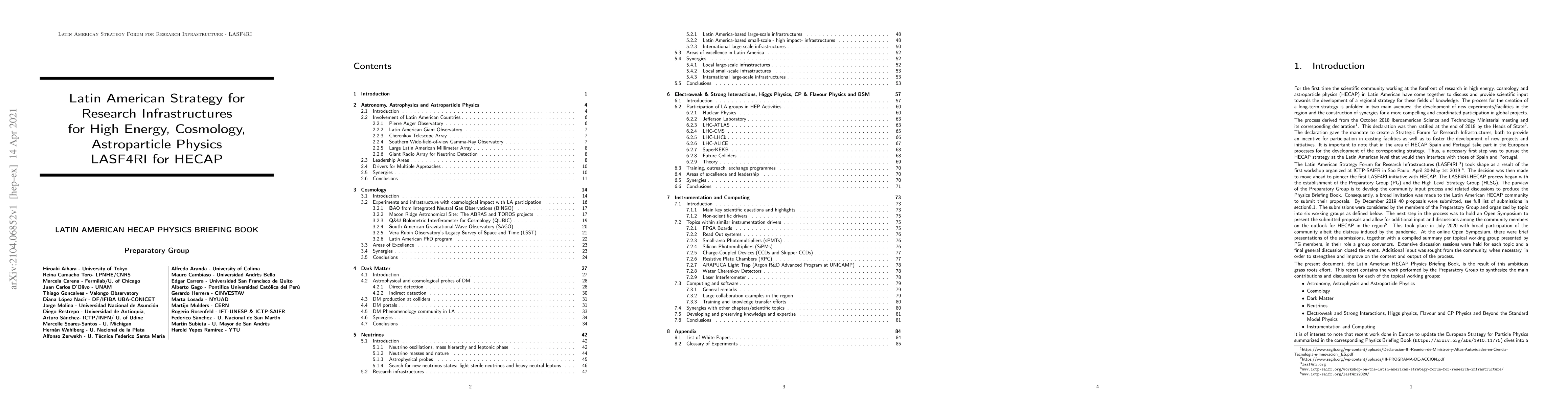 This briefing book consolidates scientific efforts from Latin America's leading high energy, cosmology, and astroparticle physics (HECAP) researchers to formulate a regional strategy, featuring emerging projects and future initiatives, aiming to guide the development of a long-term HECAP strategy in the region.