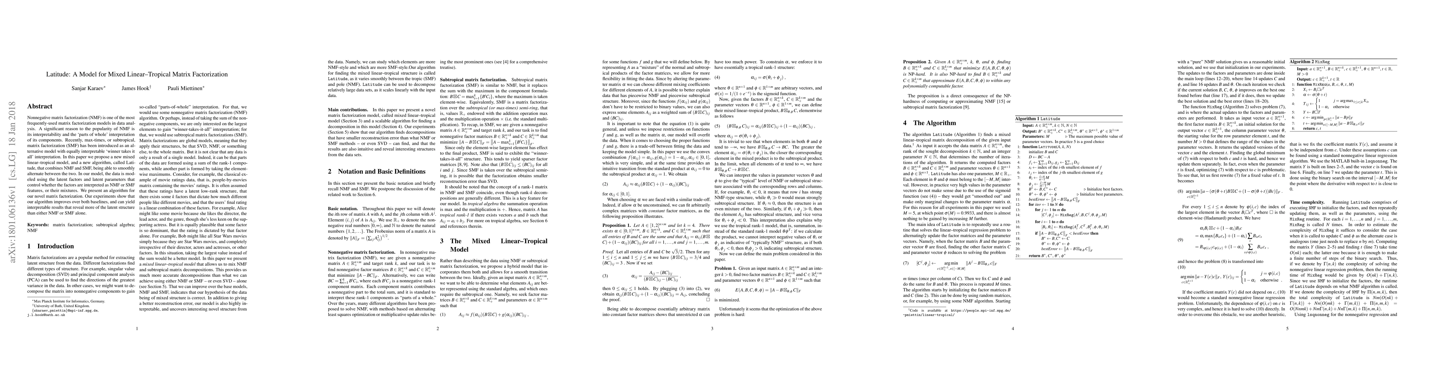 This paper introduces Latitude, a novel mixed linear-tropical matrix factorization model that combines nonnegative matrix factorization (NMF) and subtropical matrix factorization (SMF). The proposed algorithm allows for smooth transitions between NMF and SMF, enhancing interpretability and latent structure revelation.