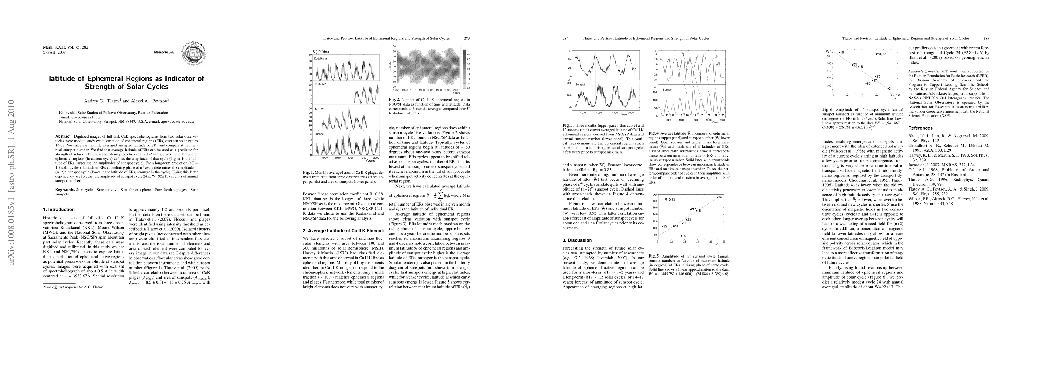 This study uses digitized CaK spectroheliograms to analyze the latitude variation of ephemeral regions over ten solar cycles, finding that their average latitude correlates with solar cycle strength. For short-term predictions, the maximum latitude of ERs in a cycle predicts its amplitude, while for long-term predictions, the latitude at the declining phase of a cycle forecasts the next cycle's strength.
