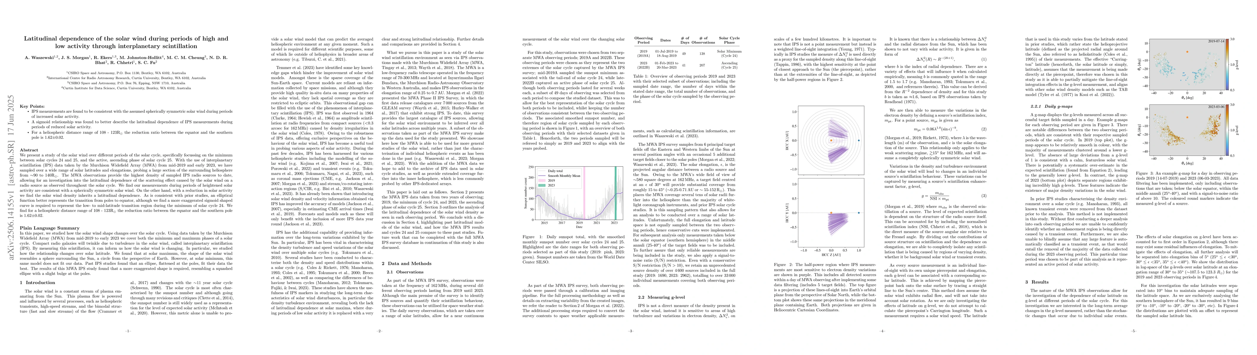 We present a study of the solar wind over different periods of the solar cycle, specifically focussing on the minimum between solar cycles 24 and 25, and the active, ascending phase of solar cycle 25. With the use of interplanetary scintillation (IPS) data taken by the Murchison Widefield Array (MWA) from mid-2019 and early 2023, we have sampled over a wide range of solar latitudes and elongations, probing a large section of the surrounding heliosphere from $\sim$90 to 140R$_\odot$. The MWA observations provide the highest density of sampled IPS radio sources to date, allowing for an investigation into the latitudinal dependence of the scattering effect caused by the solar wind on a radio source as observed throughout the solar cycle. We find our measurements during periods of heightened solar activity are consistent with a spherically symmetric solar wind. On the other hand, with a reduction in solar activity we find the solar wind density inherits a latitudinal dependence. As is consistent with prior studies, an elliptical function better represents the transition from poles to equator, although we find a more exaggerated sigmoid shaped curve is required to represent the low- to mid-latitude transition region during the minimum of solar cycle 24. We find for a heliospheric distance range of 108 - 123R$_{\odot}$ the reduction ratio between the equator and the southern pole is 1.62$\pm$0.02.
