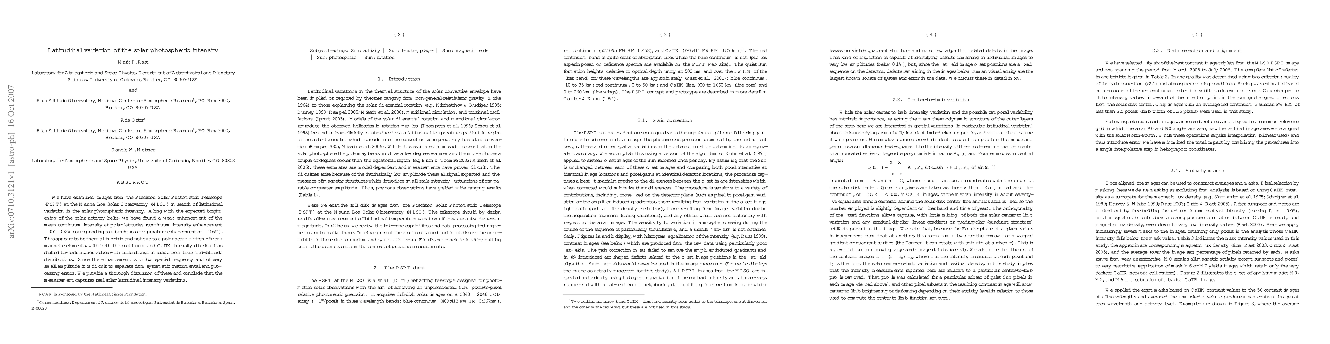 This study using PSPT images from MLSO reveals a weak enhancement in solar photospheric intensity at polar latitudes, approximately 0.1-0.2%, attributed to thermal effects rather than magnetic elements. Despite its small amplitude and low spatial frequency, the findings suggest real latitudinal variations in solar brightness.