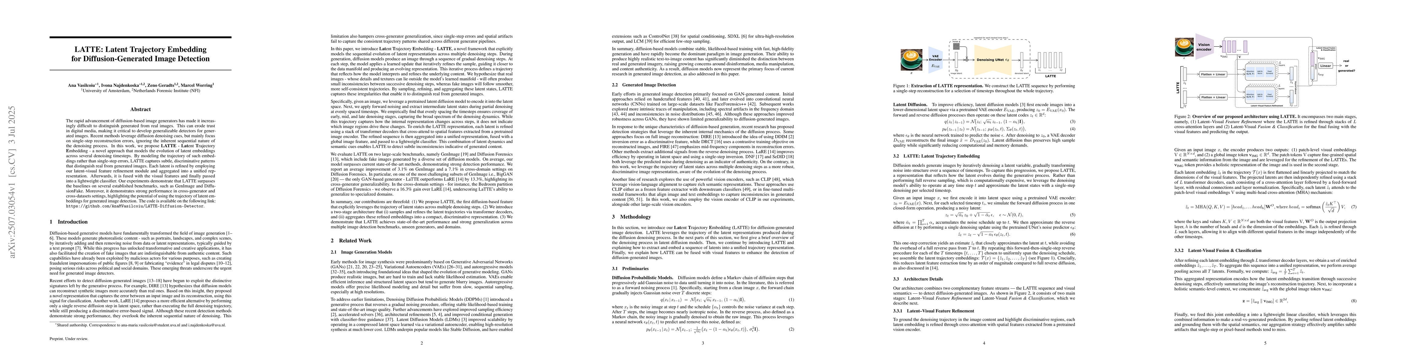 LATTE proposes a novel approach, Latent Trajectory Embedding, which models the evolution of latent embeddings across multiple denoising timesteps, capturing subtle patterns that distinguish real from generated images.