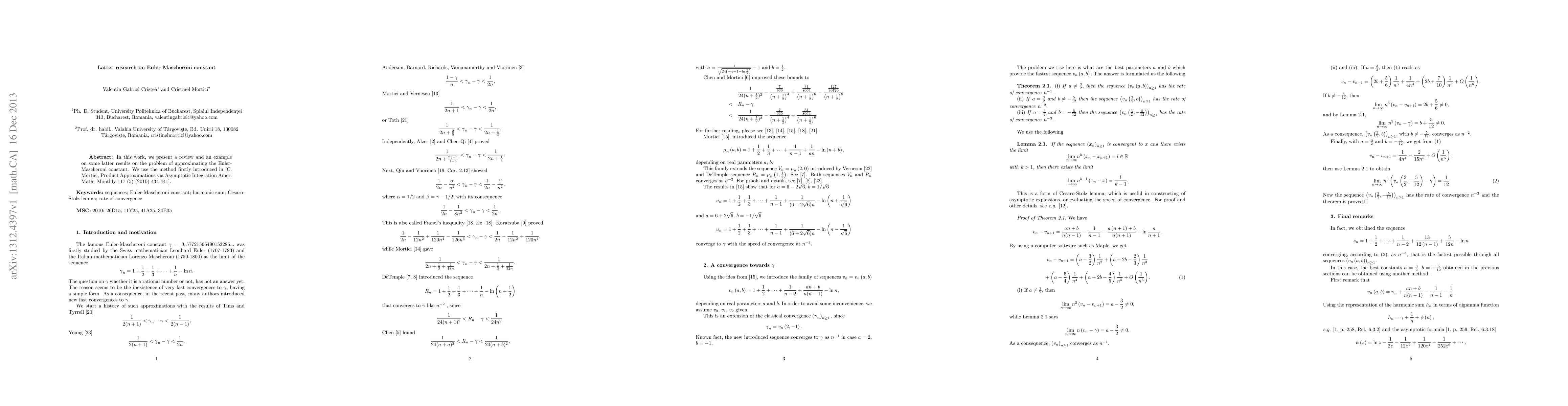 In this work, we present a review and an example on some latter results on the problem of approximating the Euler-Mascheroni constant. We use the method firstly introduced in [C. Mortici, Product Approximations via Asymptotic Integration Amer. Math. Monthly 117 (5) (2010) 434-441].