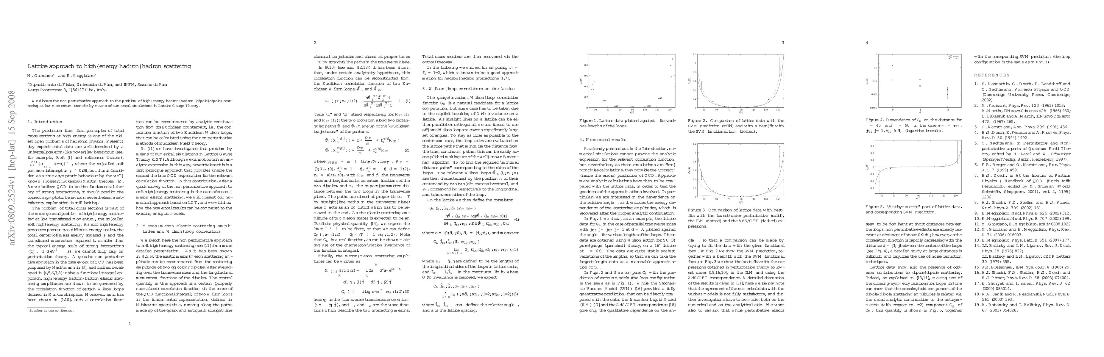 Summary: This paper explores high-energy hadron-hadron scattering using a non-perturbative lattice gauge theory approach, employing numerical simulations to analyze dipole-dipole interactions at low momentum transfer.