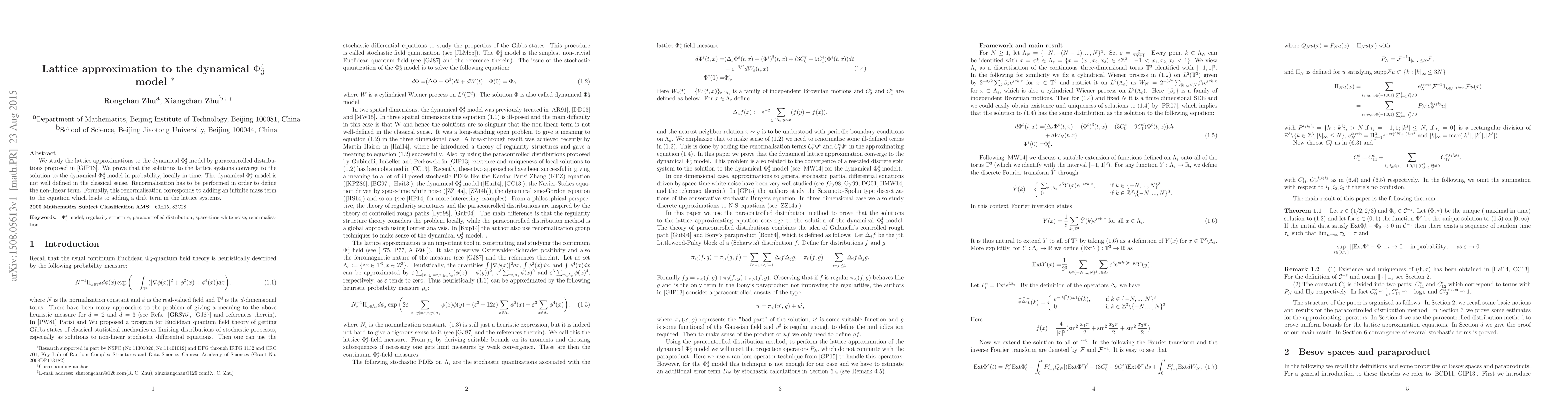 We study the lattice approximations to the dynamical $\Phi^4_3$ model by paracontrolled distributions proposed in [GIP13]. We prove that the solutions to the lattice systems converge to the solution to the dynamical $\Phi_3^4$ model in probability, locally in time. The dynamical $\Phi_3^4$ model is not well defined in the classical sense. Renormalisation has to be performed in order to define the non-linear term. Formally, this renormalisation corresponds to adding an infinite mass term to the equation which leads to adding a drift term in the lattice systems.