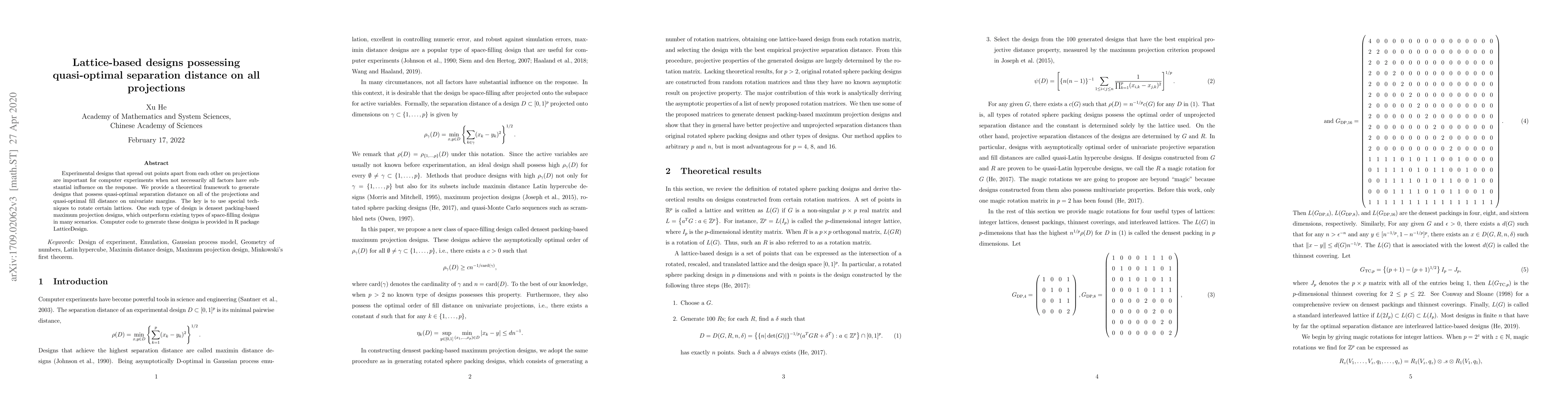 This paper introduces a theoretical framework for generating experimental designs that optimize separation distance on all projections and fill distance on univariate margins. The proposed densest packing-based maximum projection designs outperform existing space-filling designs, and the R package LatticeDesign provides code for generating these designs.