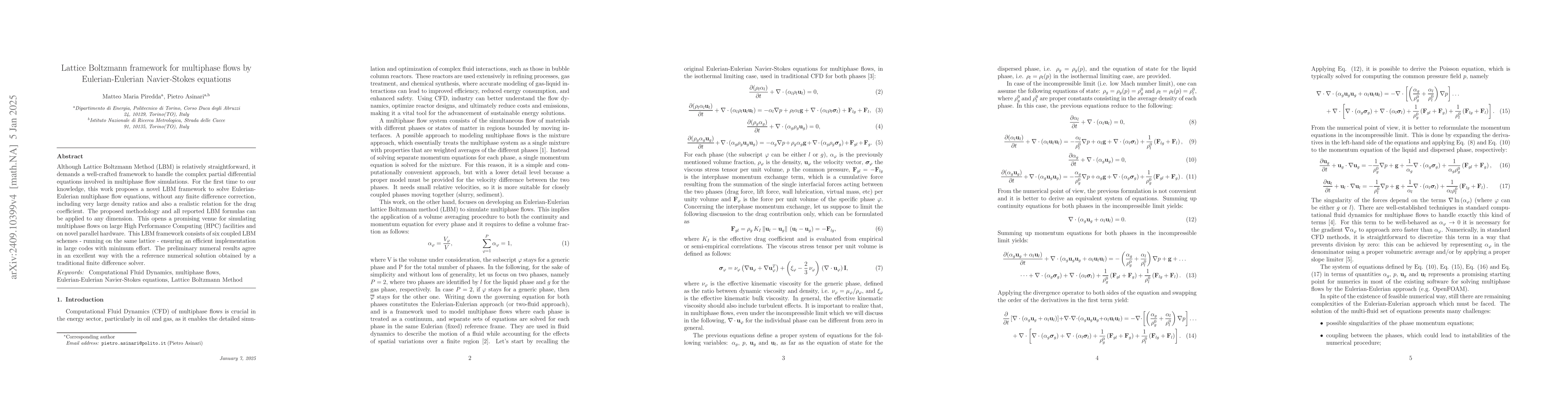 This paper introduces a novel Lattice Boltzmann Method (LBM) framework for solving Eulerian-Eulerian multiphase flow equations, which avoids finite-difference corrections and is applicable to any dimension. The proposed six-scheme LBM framework shows excellent agreement with traditional finite difference solutions.