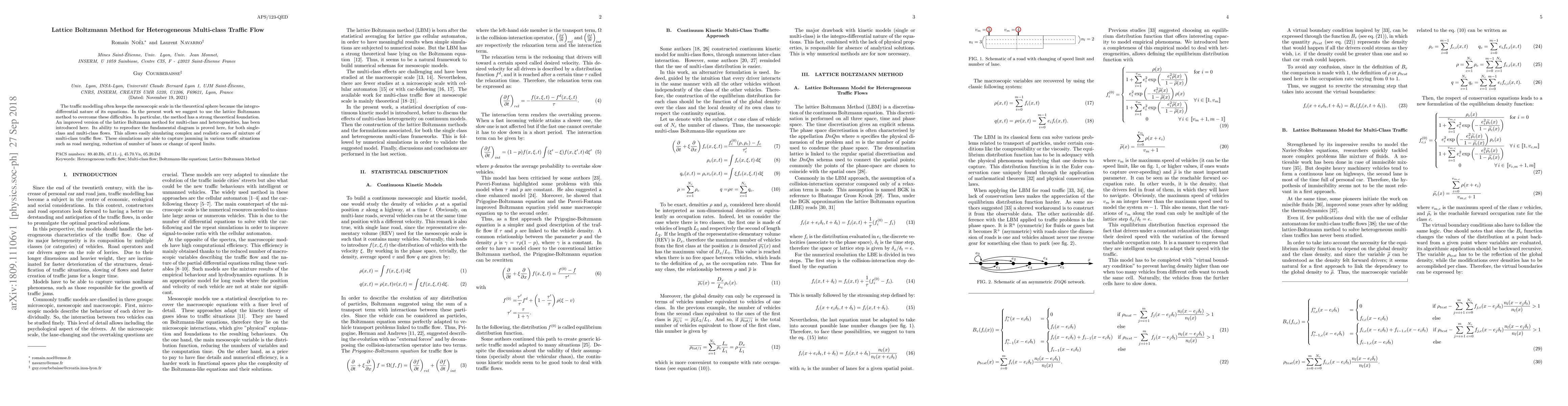 The traffic modelling often keeps the mesoscopic scale in the theoretical sphere because the integro-differential nature of its equations. In the present work we suggest to use the lattice Boltzmann method to overcome these difficulties. In particular, the method has a strong theoretical foundation. An improved version of the lattice Boltzmann method for multi-class and heterogeneities, has been introduced here. Its ability to reproduce the fundamental diagram is proved here, for both single-class and multi-class flows. This allows easily simulating complex and realistic cases of mixture of multi-class traffic flow. These simulations are able to capture jamming in various traffic situations such as road merging, reduction of number of lanes or change of speed limits.