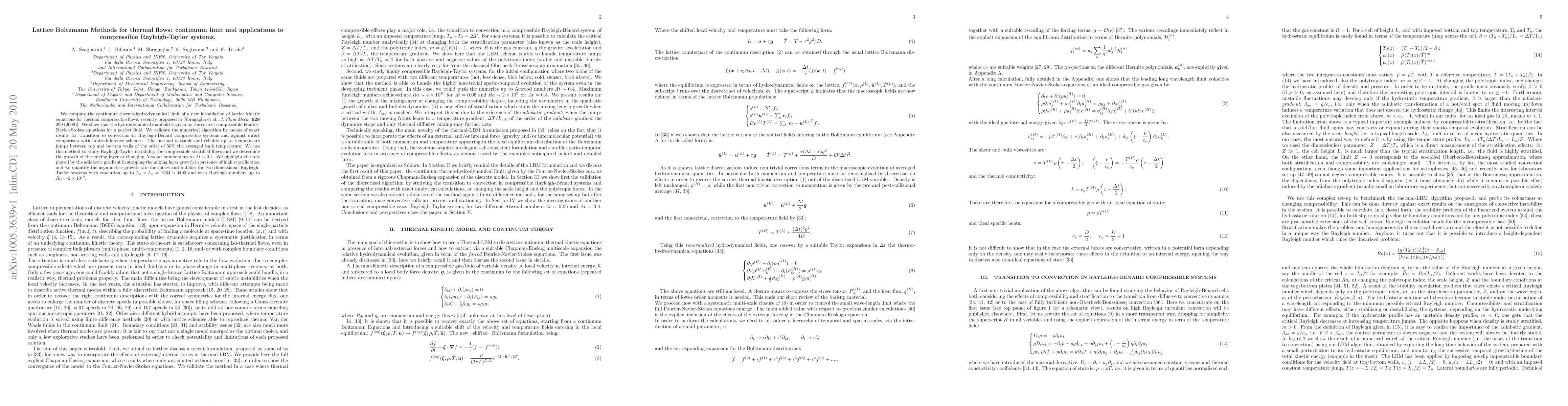 This paper develops a lattice Boltzmann method for thermal compressible flows, deriving the continuum thermo-hydrodynamical limit and validating it against Rayleigh-Bénard and Rayleigh-Taylor systems. The method effectively captures the growth of mixing layers in stratified flows, highlighting the impact of adiabatic gradients on instability dynamics.