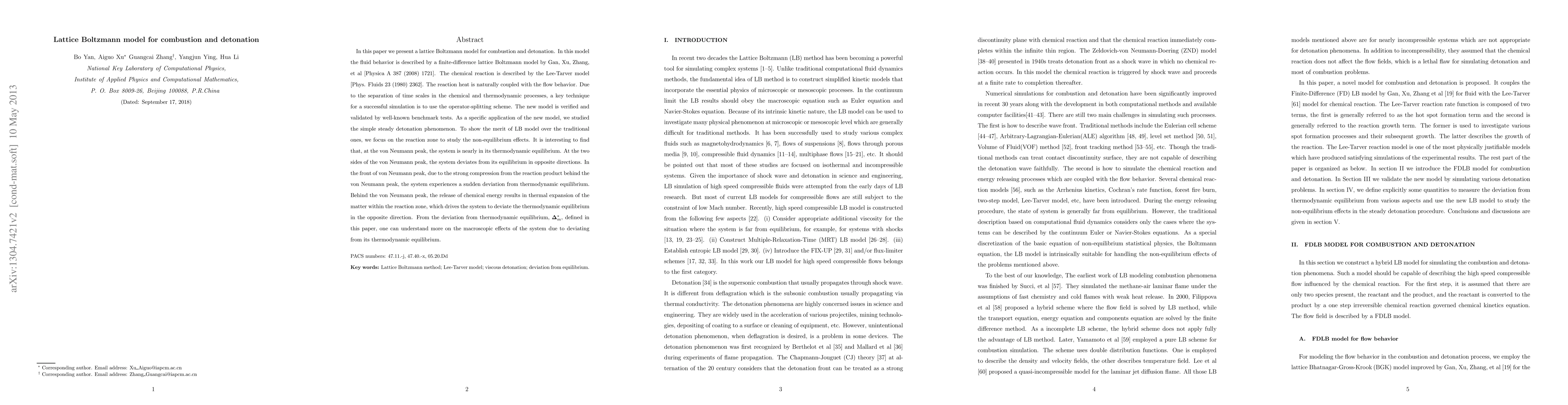 This paper presents a lattice Boltzmann model for simulating combustion and detonation processes, combining fluid dynamics and chemical reactions. The model uses an operator-splitting scheme to handle different time scales and is validated through benchmark tests, demonstrating non-equilibrium effects in the reaction zone, particularly around the von Neumann peak.