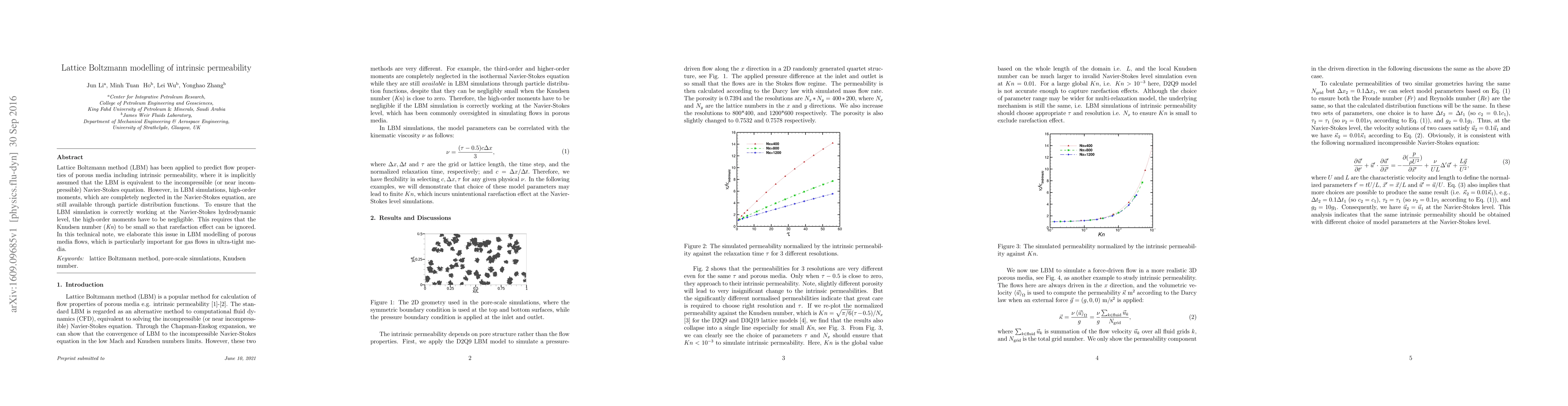 Researchers applied Lattice Boltzmann method to predict intrinsic permeability of porous media, focusing on conditions that ensure accurate Navier-Stokes hydrodynamic simulations, particularly for gas flows in ultra-tight media.