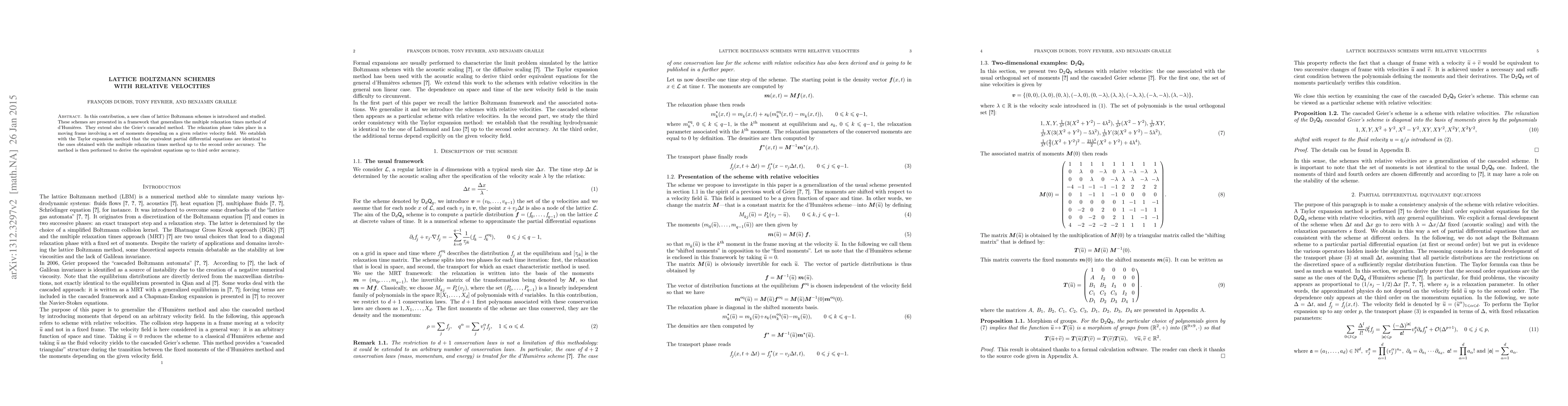 In this contribution, a new class of lattice Boltzmann schemes is introduced and studied. These schemes are presented in a framework that generalizes the multiple relaxation times method of d'Humi\`eres. They extend also the Geier's cascaded method. The relaxation phase takes place in a moving frame involving a set of moments depending on a given relative velocity field. We establish with the Taylor expansion method that the equivalent partial differential equations are identical to the ones obtained with the multiple relaxation times method up to the second order accuracy. The method is then performed to derive the equivalent equations up to third order accuracy.