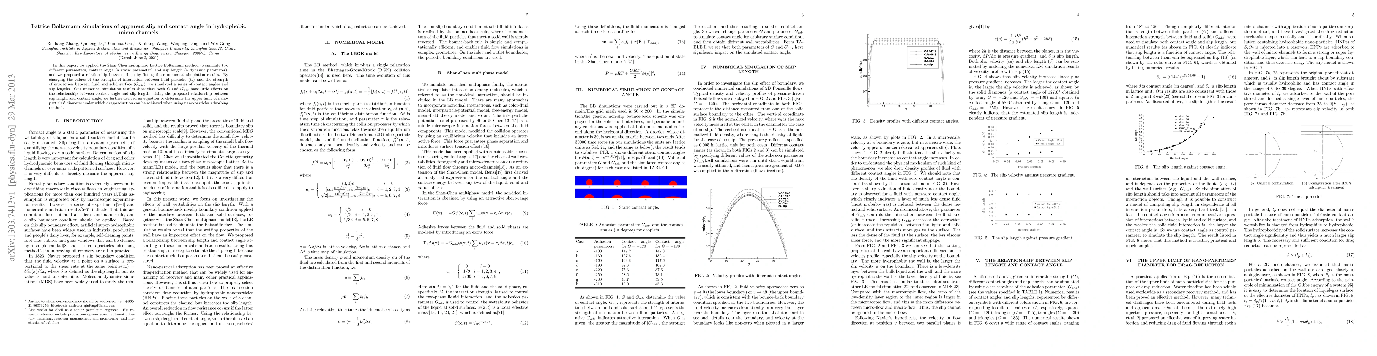A study using Lattice Boltzmann simulations found that contact angle and slip length in hydrophobic micro-channels are related, with the strength of interactions between fluid particles and solid surface having minimal effect on this relationship.
