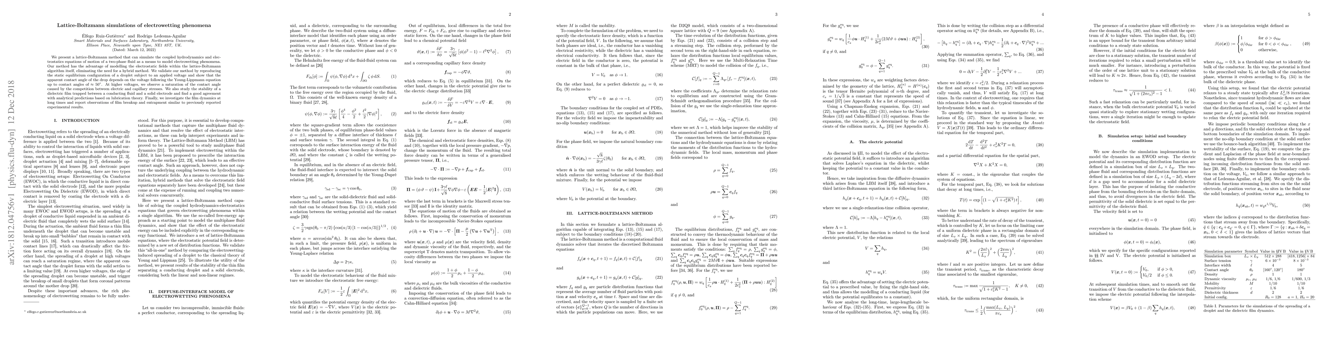 The research presents a lattice-Boltzmann method that simulates hydrodynamics and electrostatics of a two-phase fluid to model electrowetting phenomena, integrating electrostatic fields within the lattice-Boltzmann algorithm itself.