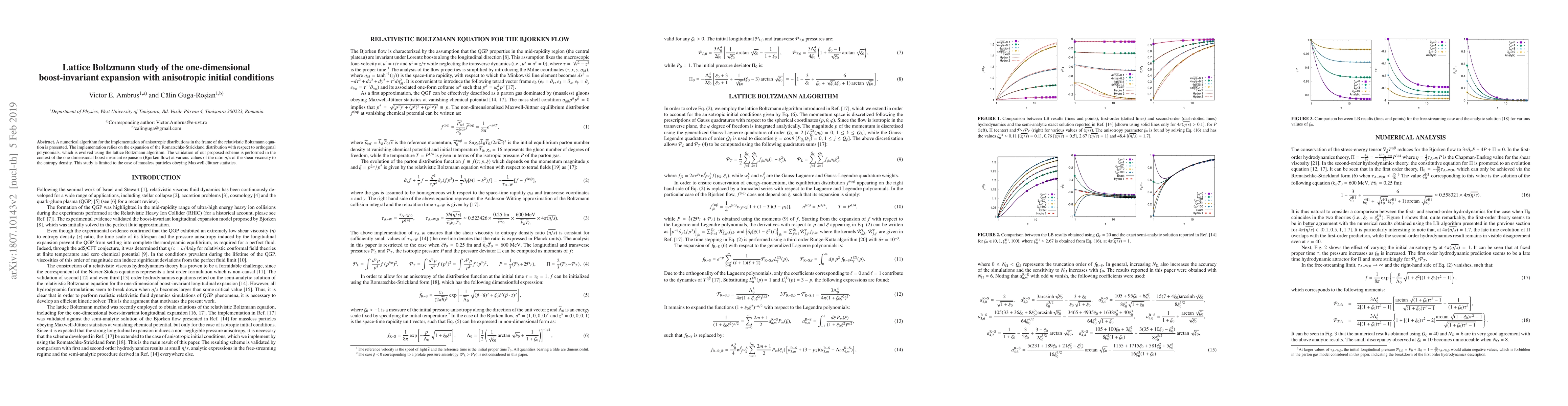 This paper presents a lattice Boltzmann method for simulating anisotropic distributions in relativistic Boltzmann equations, focusing on the one-dimensional boost-invariant expansion. The method validates the scheme by analyzing the Bjorken flow under different shear viscosity to entropy density ratios.