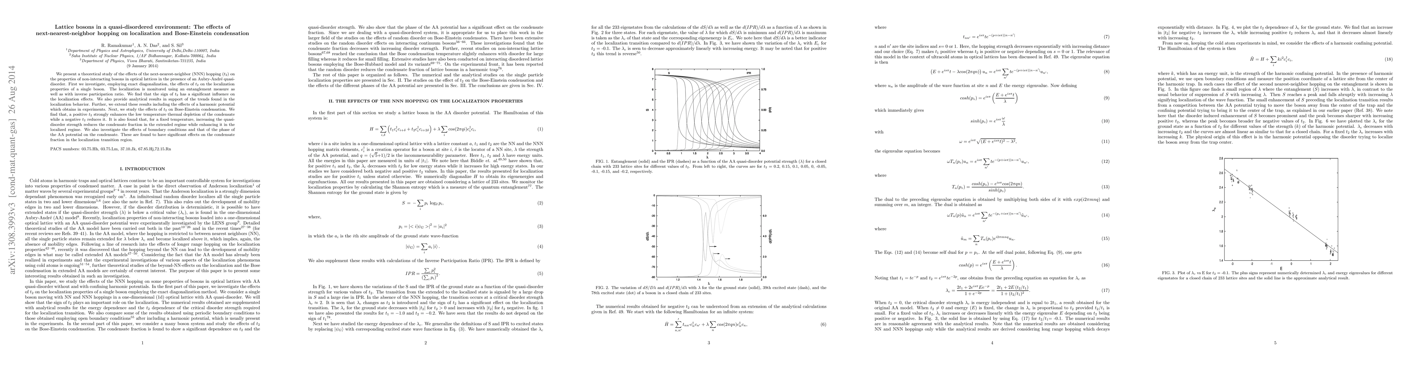 This study investigates how next-nearest-neighbor hopping affects the behavior of bosons in optical lattices with quasi-disorder, finding that it influences localization and Bose-Einstein condensation, particularly at low temperatures.